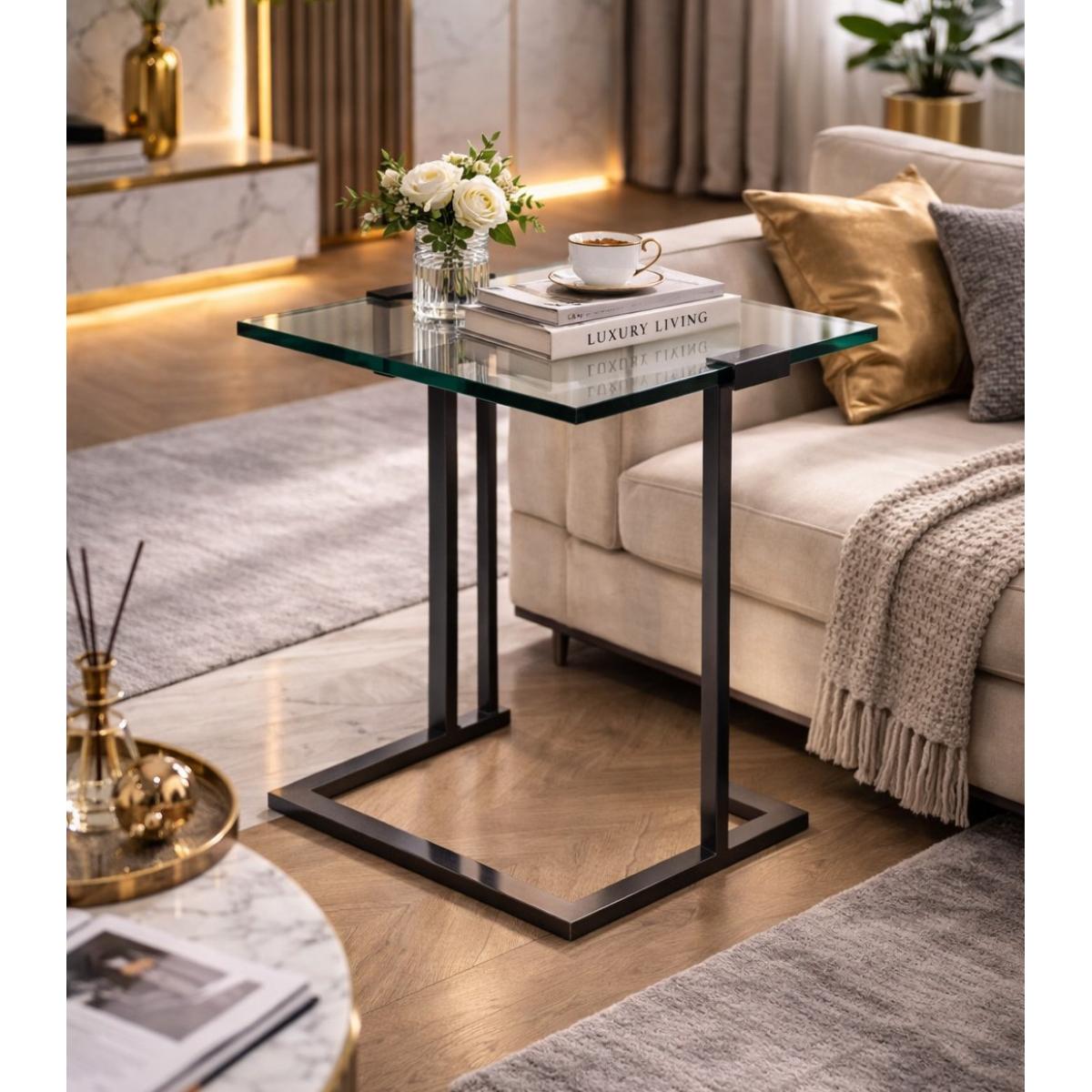 • Premium rahmenloser Beistelltisch mit klarem Glas mit 15 mm dickem gehärtetem Glas