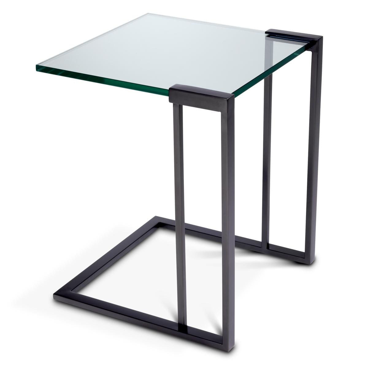 Luxuriöser quadratischer rahmenloser Beistelltisch mit klarem Glasplatte und gebürsteter Messing-/Bronze-Oberfläche von Luxury Group International