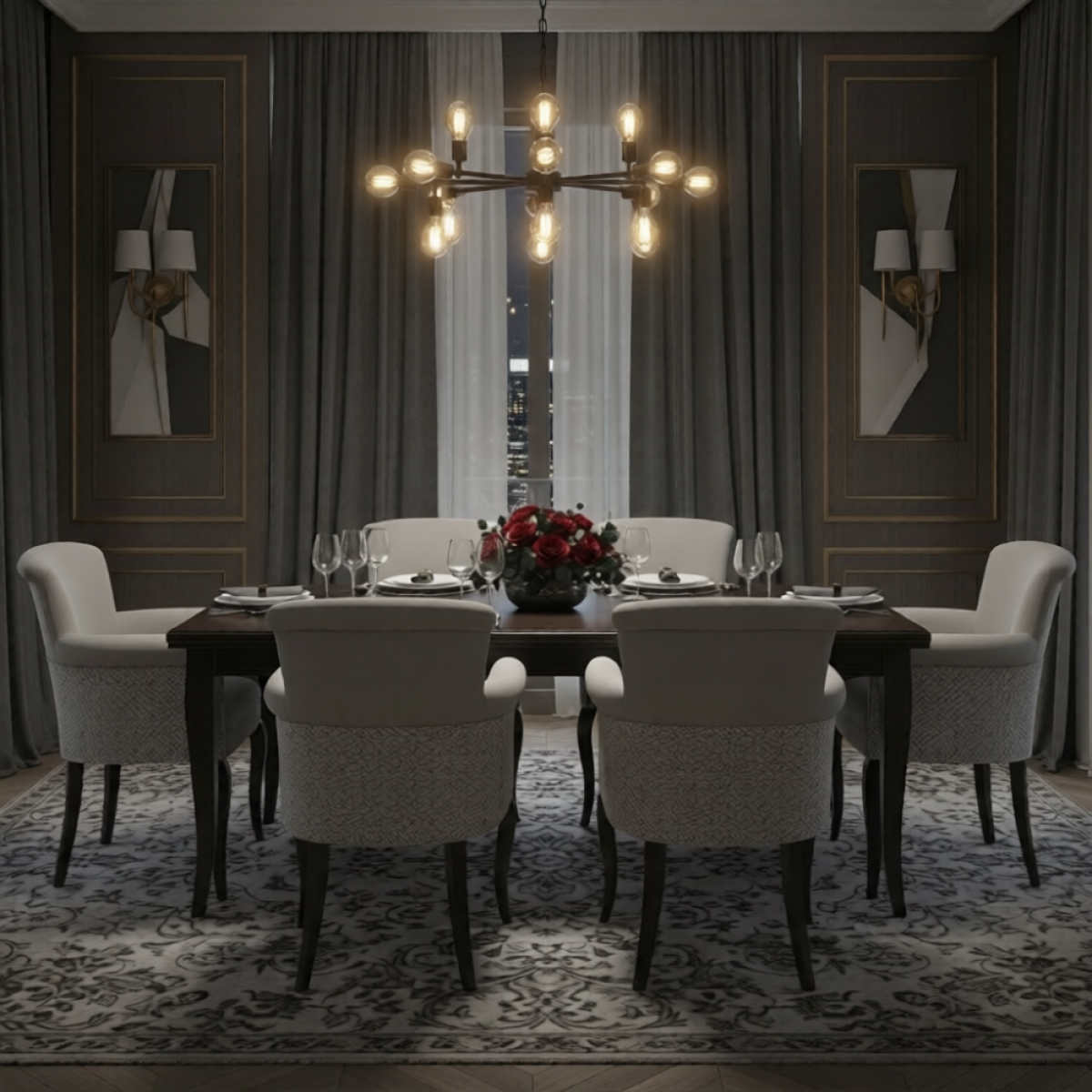 Innerhalb unserer exklusiven Kollektion von Luxussesseln bietet dieser Sessel eine hervorragende Lösung sowohl für formelle Esszimmer als auch für raffinierte Lounge-Einrichtungen. Die strukturierte Polsterung in Kombination mit gemusterten Seitendetails schafft visuelles Interesse, ohne die Innenraumpalette zu überwältigen. Für diejenigen, die ein minimaleres Profil mit einfacheren Paneel-Details suchen, dient der Luxury Upholstered Dining Chair in Soft Ivory mit strukturiertem Rückenpaneel und dunklem Nussbaumgestell als ergänzende Alternative, die ein kohärentes Styling in kuratierten Räumen ermöglicht.