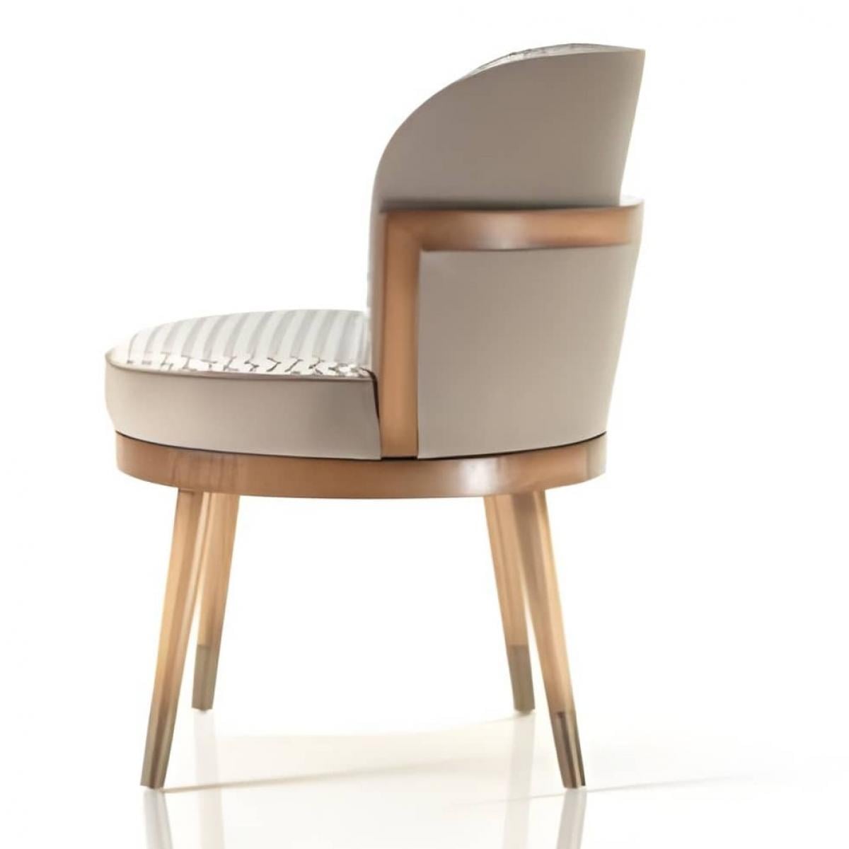 Luxuriöser gepolsterter Esszimmerstuhl in Beige und gemustertem Stoff mit gebogener Rückenlehne und Holzgestell von Luxury Group International