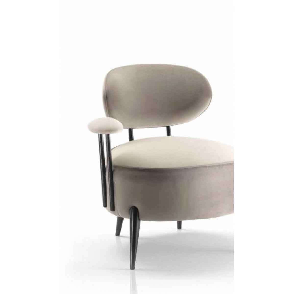 Derluxuriöse gepolsterte Esszimmerstuhl aus Taupe-Samt mit schwebender Rückenlehne und schlanken, sich verjüngenden mattschwarzen Beinen spiegelt mit seiner skulpturalen Geometrie und seinen ausgewogenen Proportionen die zeitgenössische europäische Kunst wider. Dieser unverwechselbare luxuriöse gepolsterte Esszimmerstuhl verfügt über eine weich konturierte, schwebende Rückenlehne, eine großzügig gepolsterte runde Sitzfläche und elegante Armlehnen, die von schlanken vertikalen Stielen getragen werden. Die Polsterung aus raffiniertem Taupe-Samt verleiht ihm Tiefe und Wärme, während die mattschwarzen, sich verjüngenden Beine für architektonische Präzision sorgen. Seine Silhouette geht nahtlos in formelle Esszimmerarrangements über und eignet sich hervorragend als luxuriöser Stuhl für Esszimmer.