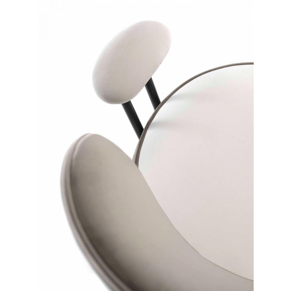 Raffinierter, luxuriös gepolsterter Esszimmerstuhl aus taupefarbenem Samt mit schwebender Rückenlehne und schlanken, mattschwarzen Beinen - ein skulpturales Statement für gehobene Interieurs, ideal unter den Luxusstühlen für Salons und exklusiv von Luxury Group International (LGI) kuratiert.