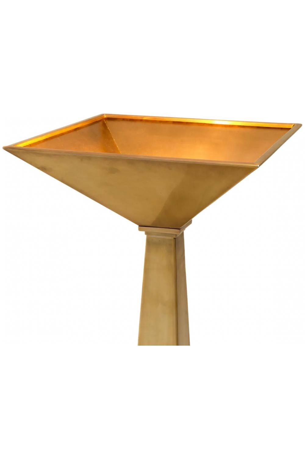 Verleihen Sie Ihren Innenräumen mit dieser luxuriösen Stehlampe, gefertigt mit einem Vintage-Messing-Finish und einem soliden schwarzen Granitsockel, eine besondere Note. Ihre skulpturale Form sorgt für elegantes Umgebungslicht und macht sie ideal für anspruchsvolle Wohnzimmer, Schlafzimmer und hotelähnliche Räume.