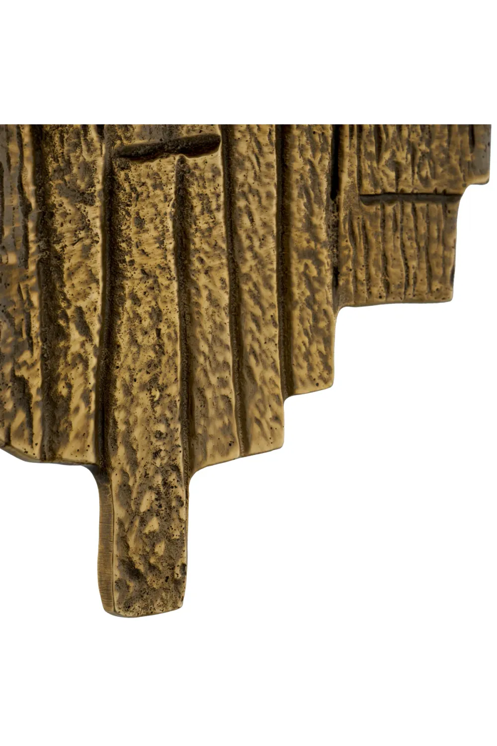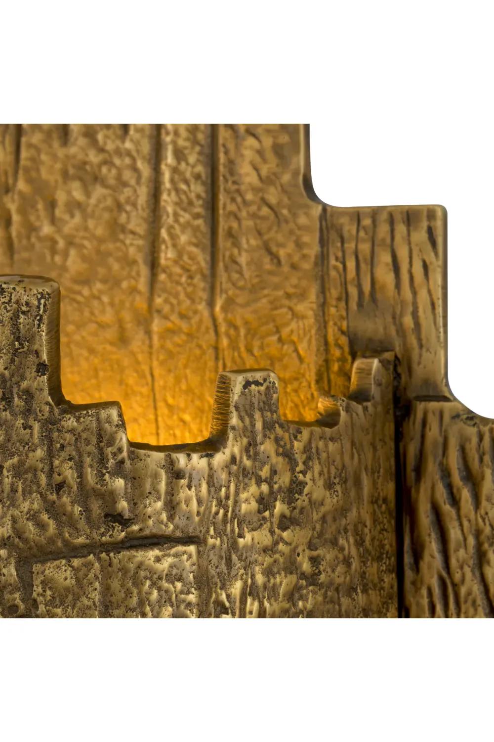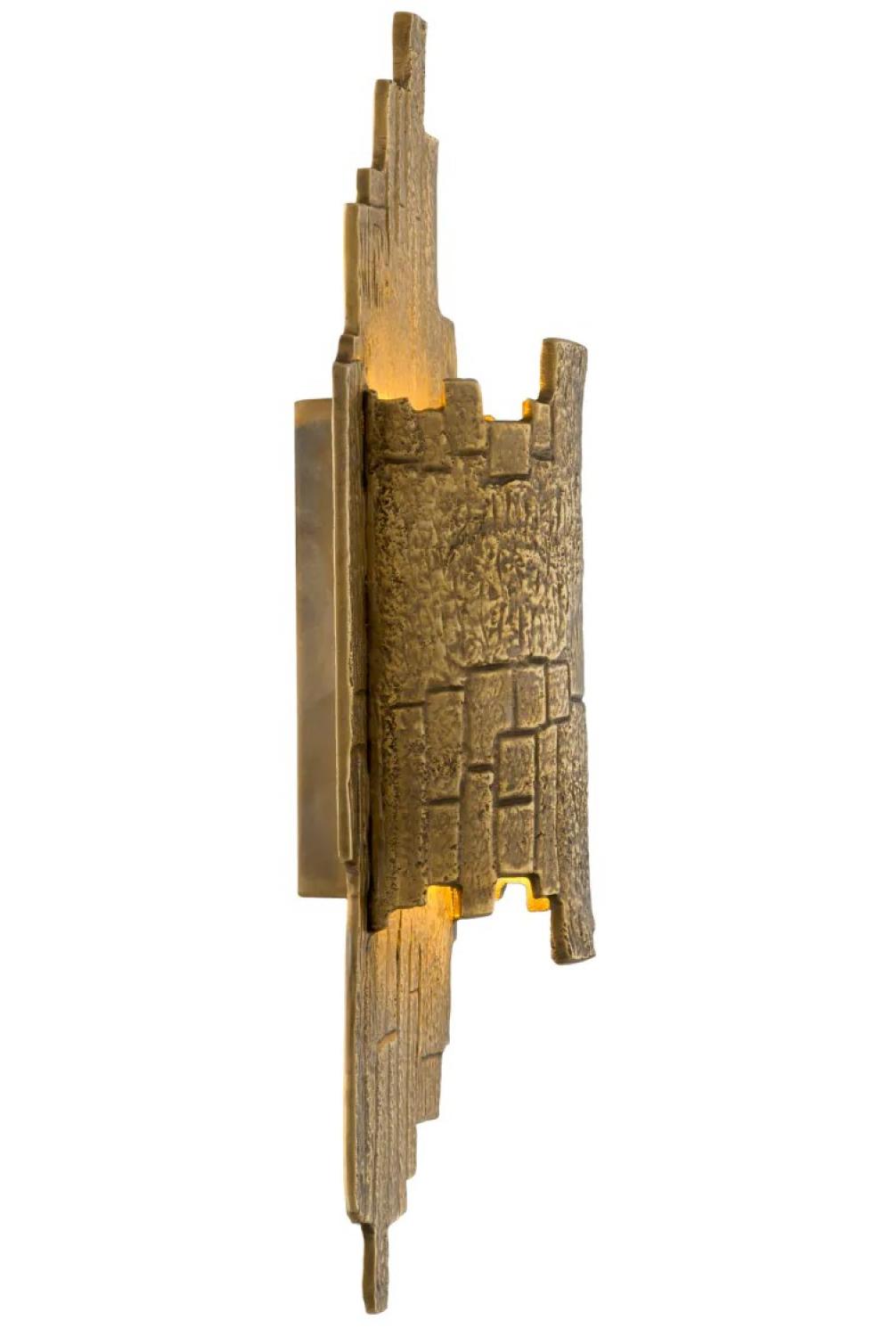 Verwandeln Sie Ihr Interieur mit dieser luxuriösen Wandleuchte, die mit einer edlen Vintage-Messing-Oberfläche ausgestattet ist und hochkarätige Eleganz ausstrahlt. Dieses skulpturale Metallobjekt besticht durch ein einzigartiges, abstraktes, eckiges Design und ist ein kompakter, aber kraftvoller Blickfang für jedes moderne Zuhause.