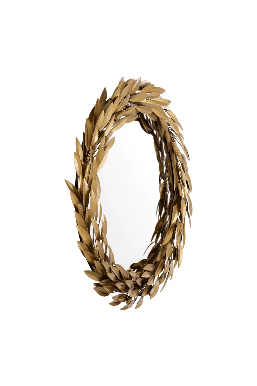 Der runde Spiegel Luxury Vintage Gold Leaf Frame zeigt die Schönheit handwerklicher Kunstfertigkeit mit seinem skulpturalen Blattrand und dem sanft gealterten goldenen Finish. Dieser luxuriöse Spiegel kombiniert böhmische Eleganz mit klassischer europäischer Kunstfertigkeit und bildet einen fesselnden Blickpunkt in modernen, Vintage- oder eklektischen Interieurs. Seine runde Silhouette verleiht Wandkompositionen Ausgewogenheit und Harmonie und wertet den Raum mit sanften Kurven und raffinierter Textur auf.
