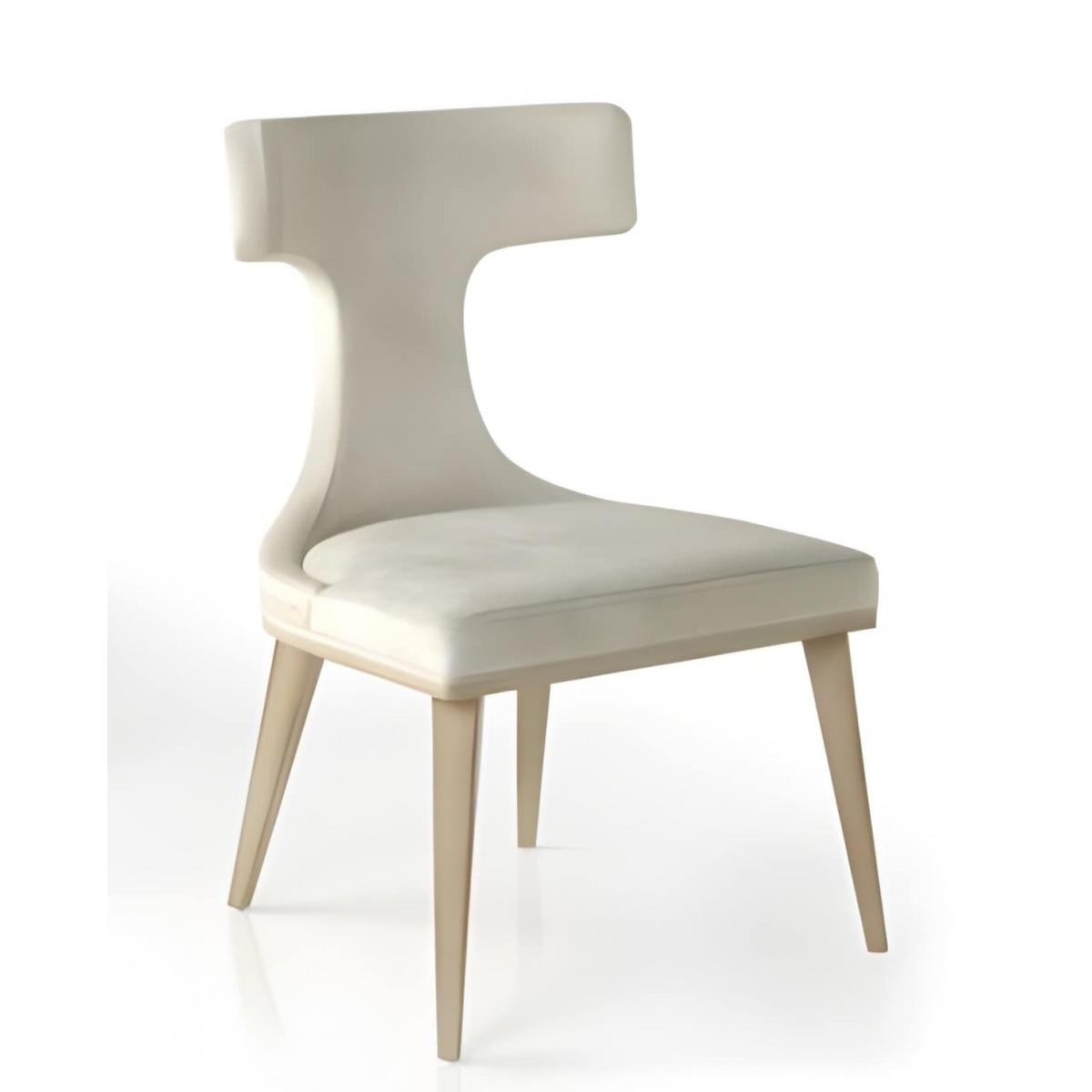 Ein zeitgenössischer, luxuriös gepolsterter Esszimmerstuhl, der sich durch seine T-förmige Rückenlehne und seine raffinierte weiße Polsterung auszeichnet. Er wurde für anspruchsvolle Interieurs entworfen und bereichert die Luxusstühle für Esszimmer mit moderner europäischer Eleganz und maßgeschneidertem Komfort.