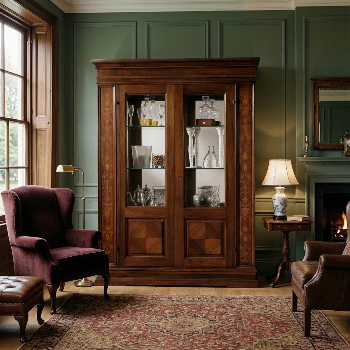 - Klassischer barocker Vitrinenschrank mit dekorativen Intarsiensäulen
