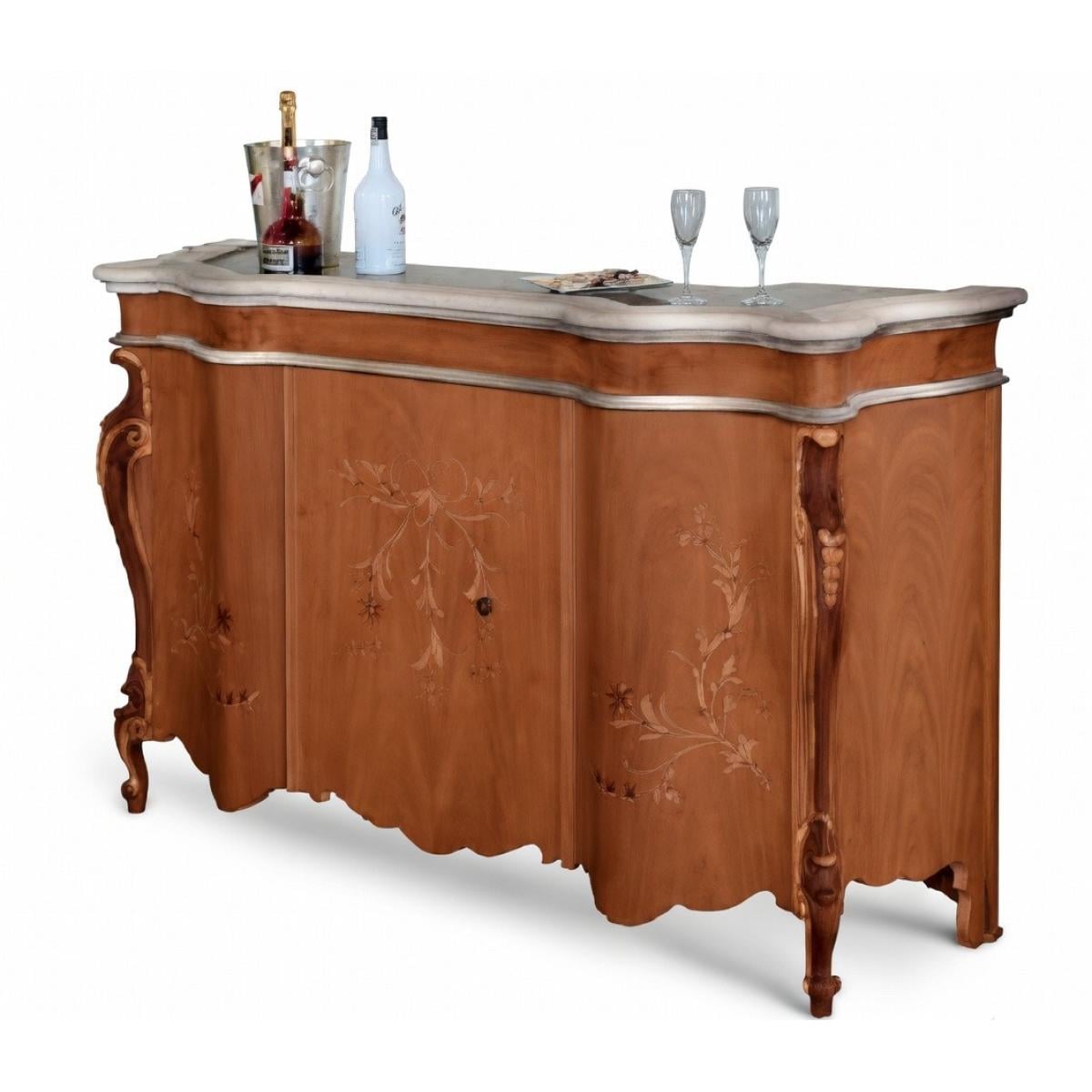 Luxus Barock-Sideboard aus Holz mit Marmorplatte & handeinlegierten Blumenpaneelen – 180 CM von Luxury Group International