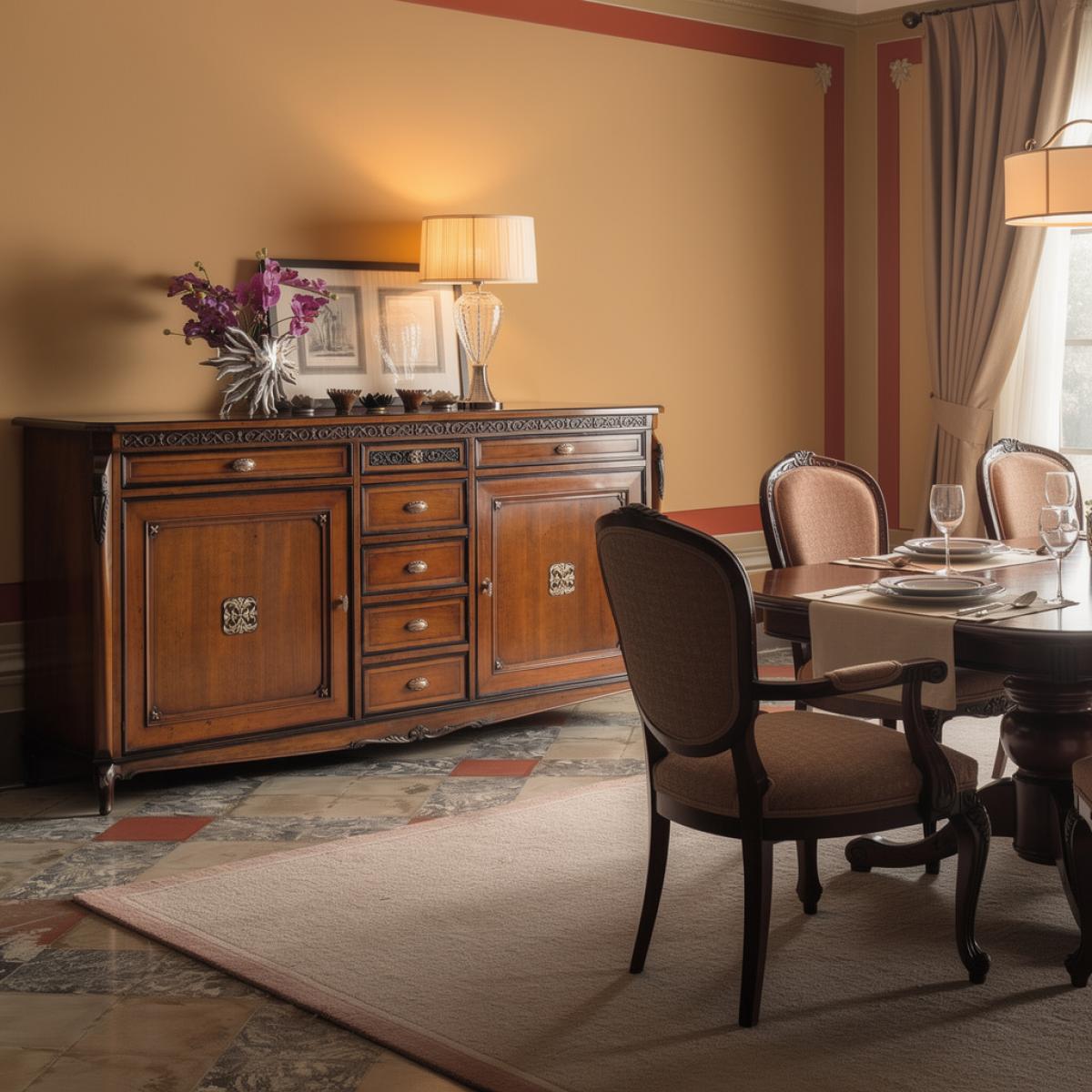 Luxus Holz Barock Sideboard mit Mehreren Schubladen & Aufbewahrungsschrank ist ein elegantes Luxus-Sideboard, das entwickelt wurde, um anspruchsvolle europäische Interieurs aufzuwerten. Gefertigt aus hochwertigem Holz mit stilvollen barocken Details, besticht dieses Sideboard durch eine natürliche, reichhaltige Oberfläche, die die Schönheit traditioneller Handwerkskunst hervorhebt. Dekorative Zierleisten, kunstvoll gestaltete Beine und edle Beschläge unterstreichen seinen zeitlosen Charme. Die Anordnung mehrerer Schubladen ermöglicht eine praktische Organisation, während der geräumige Doppeltürenschrank für Funktionalität sorgt – so entsteht mit diesem Barock Sideboard die perfekte Balance aus Eleganz und Alltagstauglichkeit.