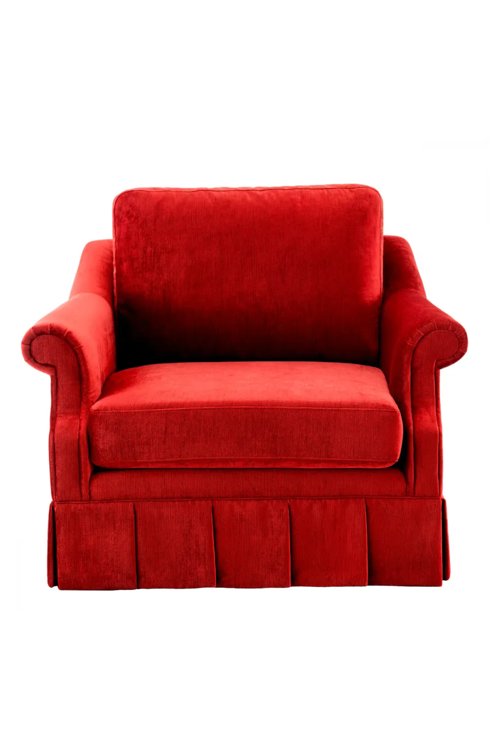 Veredeln Sie Ihr Interieur mit diesem luxuriösen Sofa, gefertigt aus reichhaltigem Wrey-Samt in Rot. Ein kompakter, luxuriöser roter Einzelsessel, inspiriert von zeitloser, erhabener Eleganz.