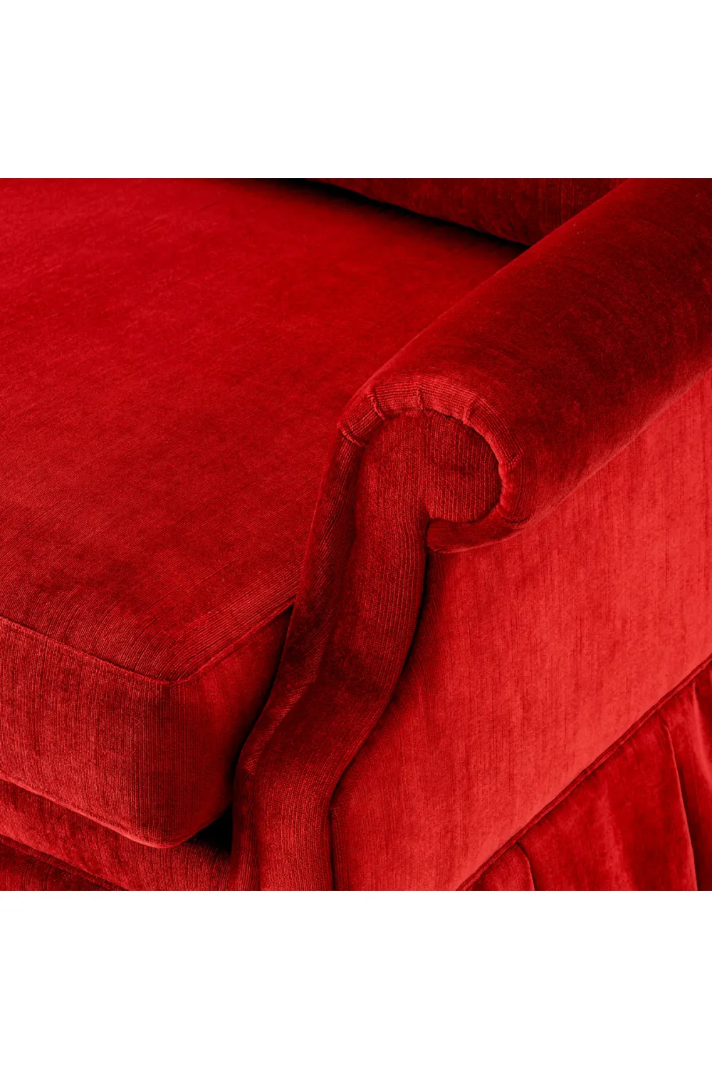 Fachmännisch konstruiert, wird dieses Luxussofa von einem robusten Innenrahmen getragen, der auf Langlebigkeit und dauerhafte Leistung ausgelegt ist. Üppige Polsterung bietet ein tief komfortables Sitzgefühl und bewahrt gleichzeitig seine elegante Form über die Zeit. Der Samtbezug verstärkt die haptische Fülle und sorgt dafür, dass dieses rote Sofa ebenso verwöhnend ist, wie es aussieht.