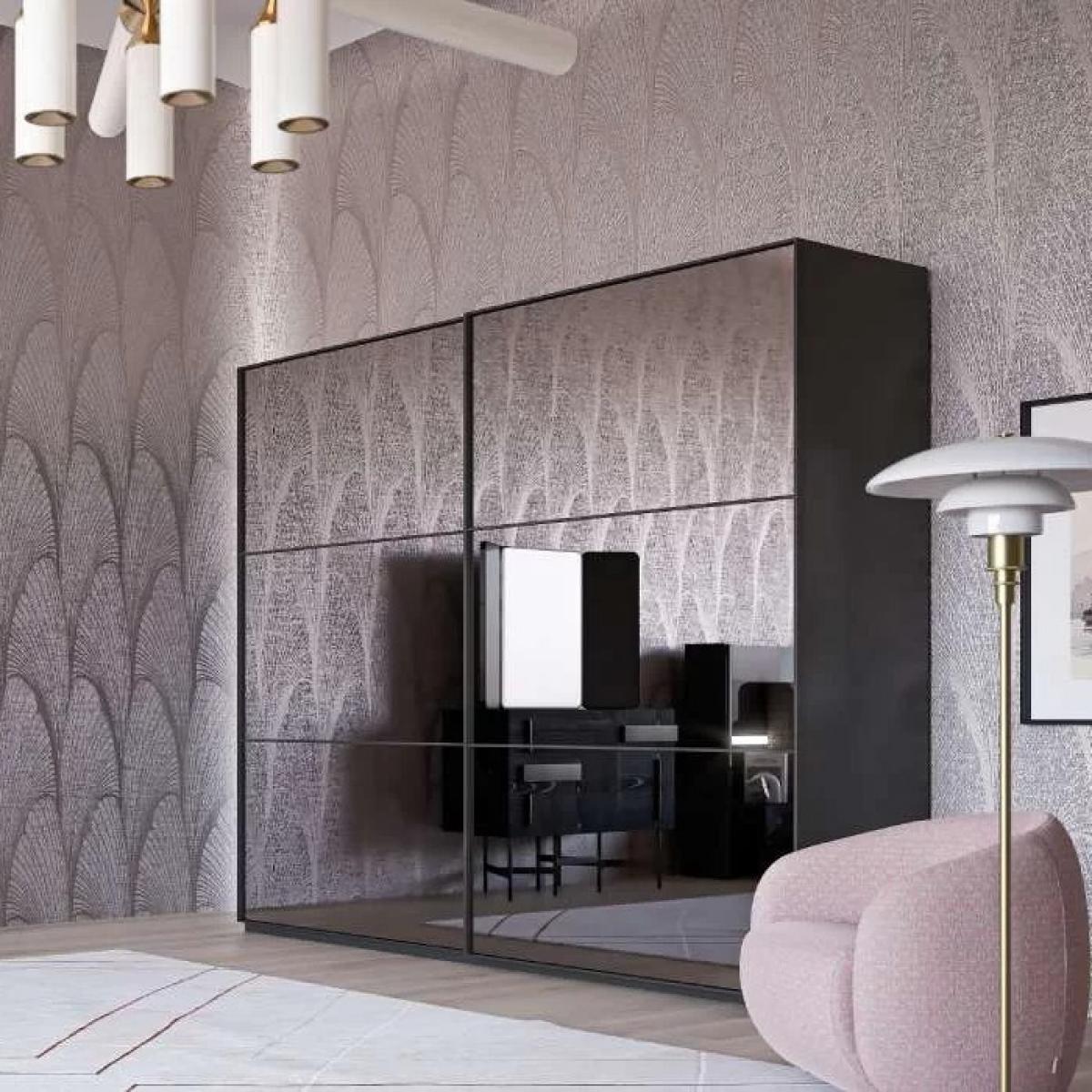 Rüsten Sie Ihren Raum mit einem Kleiderschrank mit Spiegel auf, der klare Linien und eine raffinierte Präsentation vereint. Dieser Luxus Schlafzimmer Schrank zeichnet sich durch eine moderne Silhouette in elegantem schwarzem Schrankdesign aus, das in mattem Stil für ein ruhiges, zeitgemäßes Ambiente gefertigt ist.