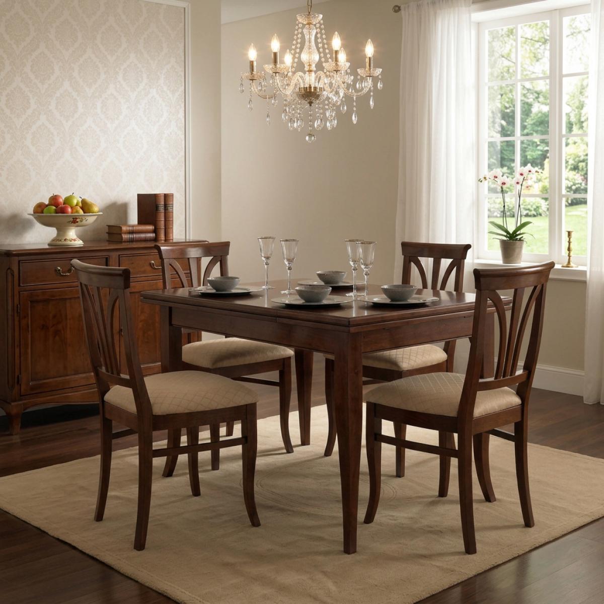 Rechteckiges Barock Luxus Esszimmer-Set in Nussbaum-Finish — 1 ausziehbarer Tisch & 4 Esszimmerstühle ist ein distinguiertes Luxus-Esszimmer-Set, das raffinierte europäische Eleganz in Ihren Essbereich bringt. Der rechteckige Ausziehtisch besticht durch ein glattes Nussbaum-Finish mit sanft modellierten Kanten und elegant zulaufenden Beinen, die sowohl strukturelle Stabilität als auch optische Finesse bieten. Das ausziehbare Design sorgt für Flexibilität und eignet sich perfekt für den täglichen Gebrauch sowie für intime Zusammenkünfte.