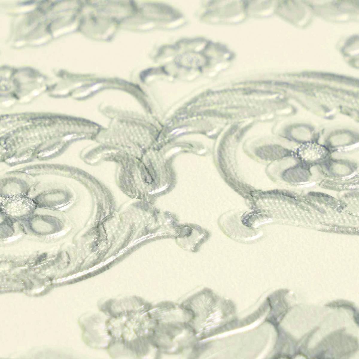 • barocke, verschnörkelte Designertapete mit metallisch strukturierter Oberfläche