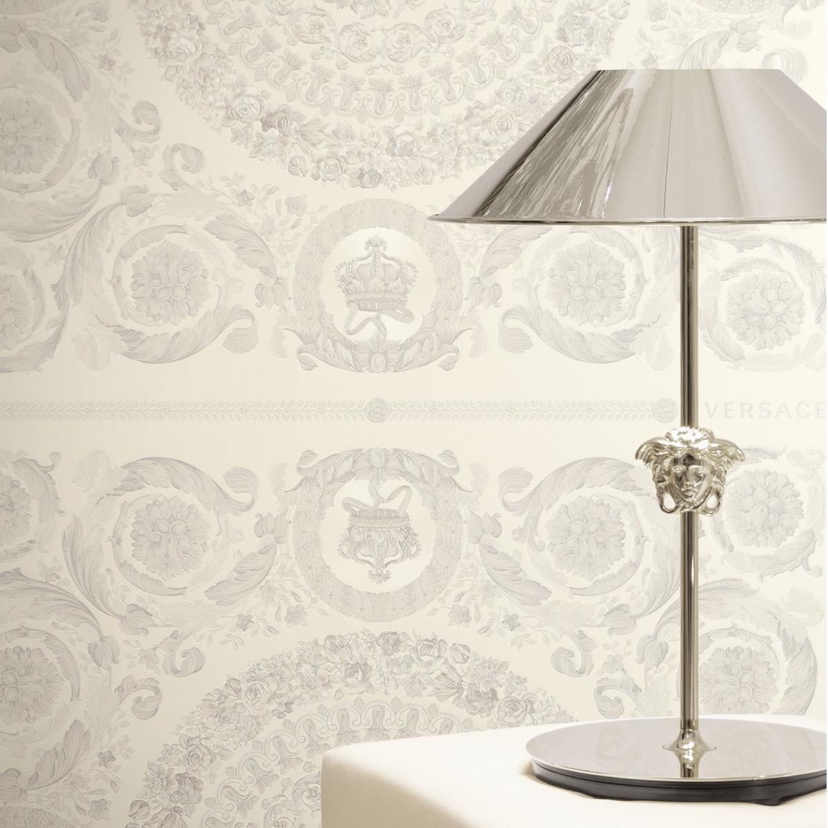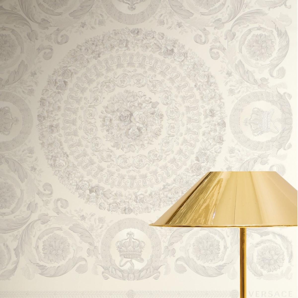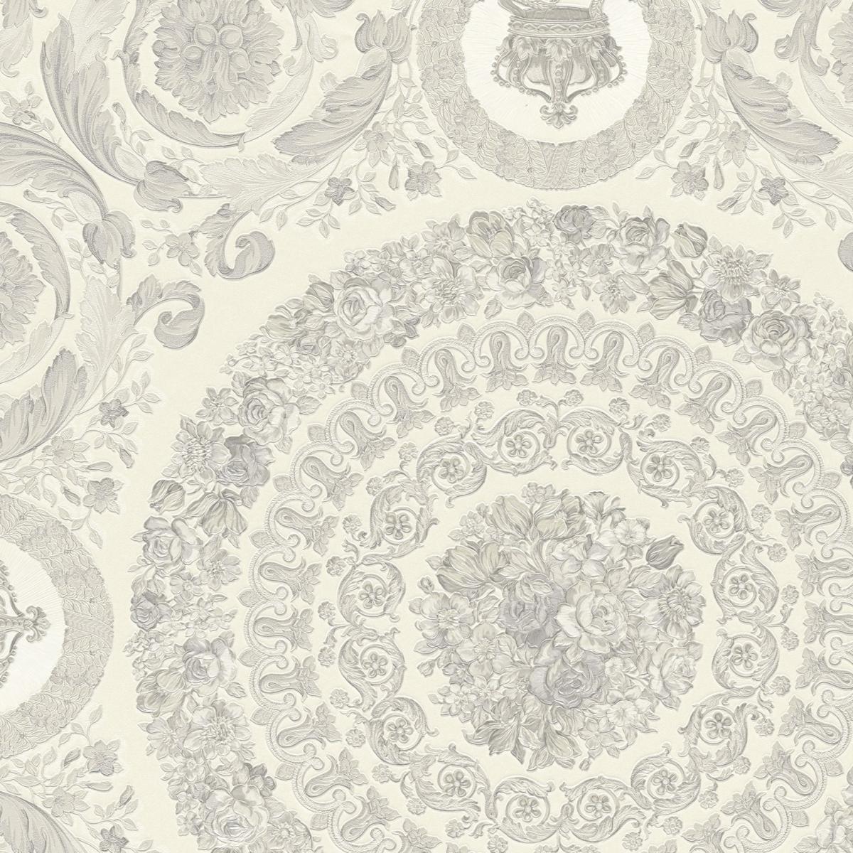 Versace Creme Grau Barock Heritage Zentral Medaillon Designer Tapete von Luxury Group International