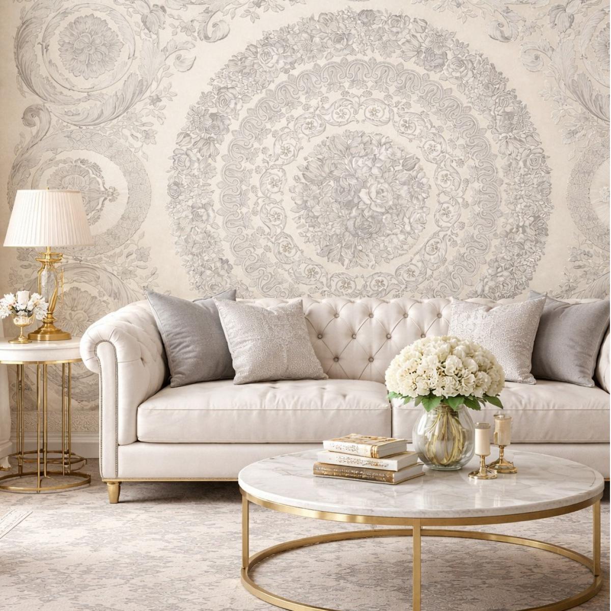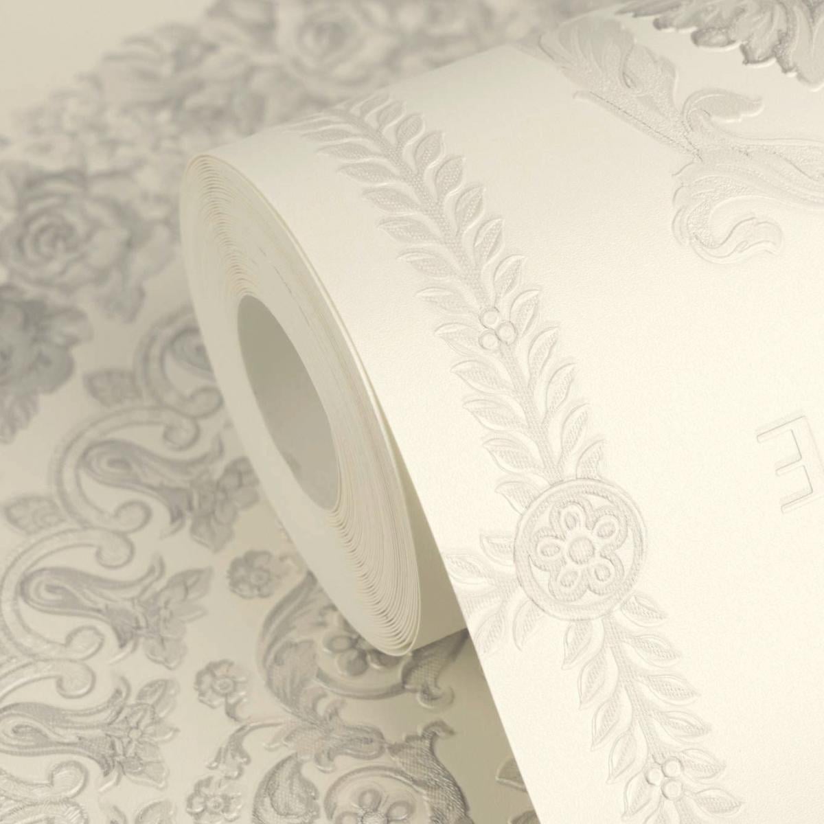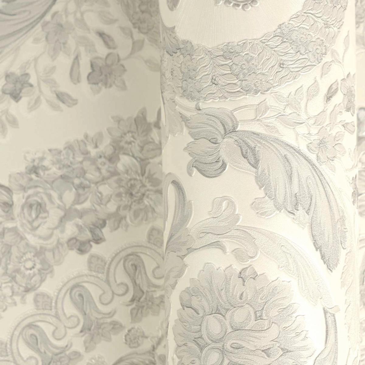 Versace Creme Grau Barock Heritage Zentral Medaillon Designer Tapete von Luxury Group International