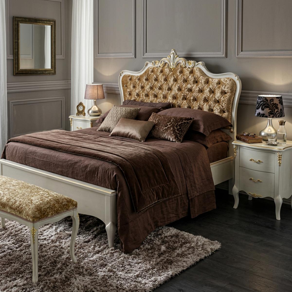 Unsere Luxusbetten vereinen üppige Polsterungen, kunstvoll geschnitzte Holzrahmen und opulente barocke Details zu majestätischen Blickfängen, die anspruchsvolle Schlafzimmer mit klassischer europäischer Pracht und dauerhaftem luxuriösem Komfort verwandeln.