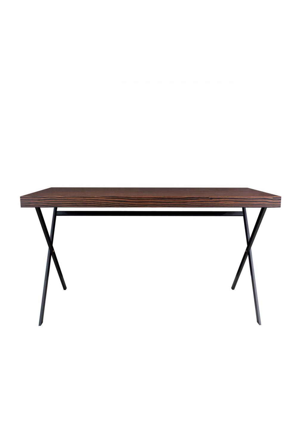 The Ebonwood Executive Desk embodies contemporary refinement through a seamless fusion of rich materials and minimalist design. Measuring 140 cm in length, this desk features a Macassar veneered wooden top whose distinctive dark woodgrain captures light beautifully, reflecting craftsmanship and natural artistry. The slim powder-coated metal frame ensures strength and elegance, creating a light yet stable foundation.