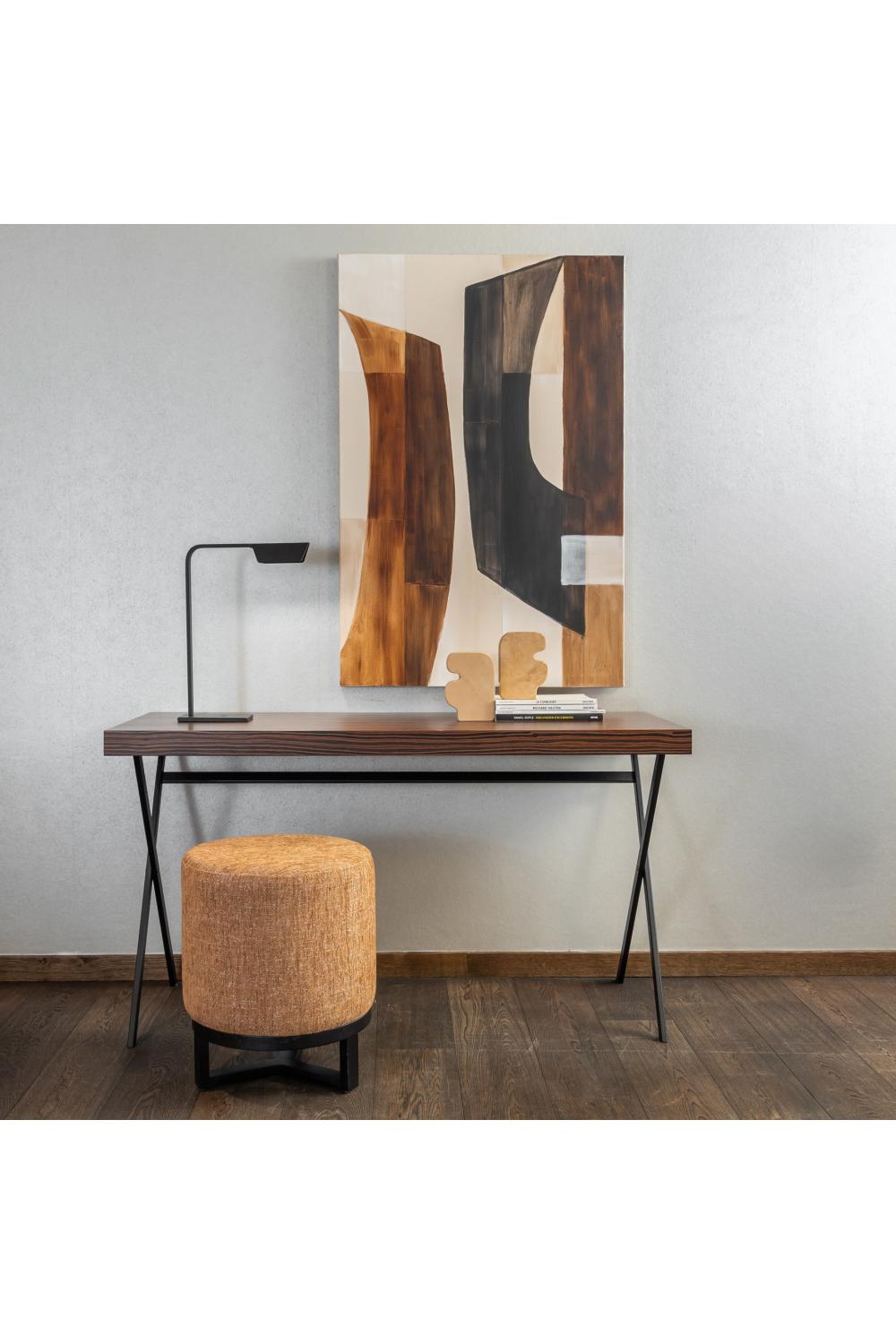 The Ebonwood Executive Desk redefines modern workspace elegance. Crafted with a Macassar veneered wooden top and supported by a sleek powder-coated metal frame, it offers both sophistication and function. Its clean lines and warm texture create a perfect centerpiece for home offices or executive suites, blending contemporary design with timeless craftsmanship to elevate any interior.