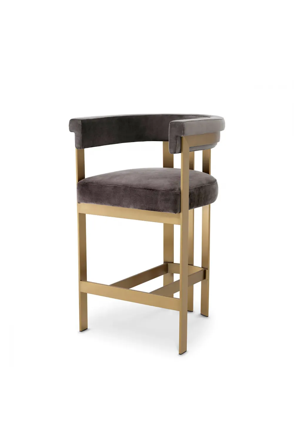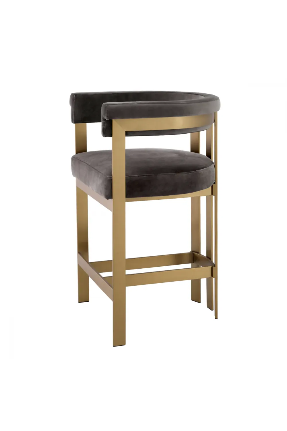 Built with precision and attention to detail, the stool features a sturdy stainless-steel frame with a brushed brass finish for lasting durability and sophistication. Its ergonomic design ensures exceptional comfort, complemented by a supportive backrest and a well-positioned footrest for relaxed seating during meals or gatherings.