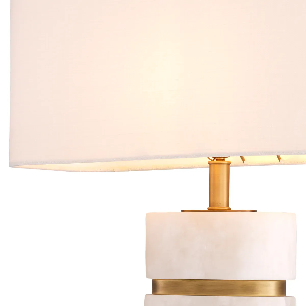 The standout look is the stacked, cylindrical marble column, visually grounded by wide brass bands. A central brass neck connects the drum-shaped fabric shade to the body, creating a clean transition from shade to structure. This gold table lamp style works beautifully with contemporary interiors, especially when you want warm, comfortable light that flatters surfaces and softens the room. Subtle, stone-like character and the polished brass contrast deliver a luxe focal point without overwhelming surrounding furnishings. Illuminate your living spaces with our luxury lighting collections, where refined craftsmanship and layered lighting come together to create a timeless and sophisticated ambiance.