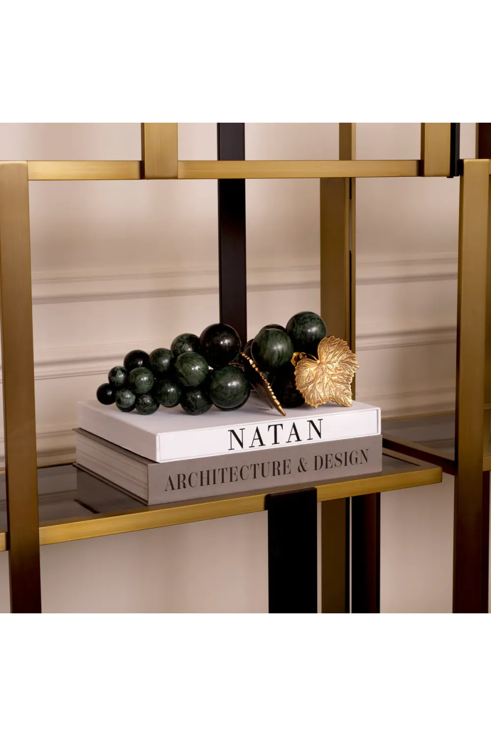 Elegant Vintage Grapes Marble Object – Brass Leaf Decor Accent
