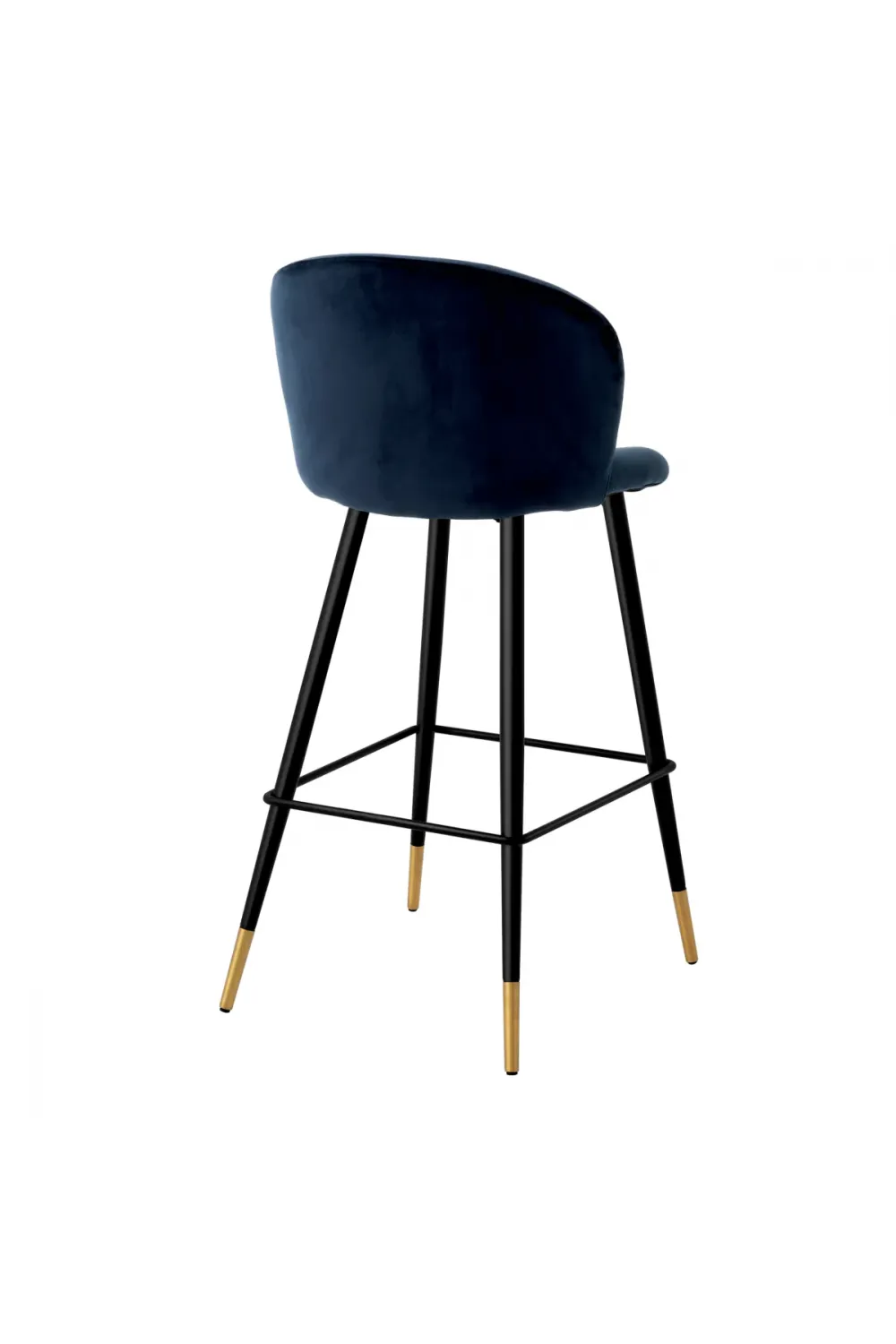 The black tapered legs with elegant gold finish caps add a luxurious contrast to the rich velvet upholstery, creating a statement piece that enhances kitchens, bars, lounges, or dining areas. Durable construction ensures long-lasting stability, making the Volante Bar Stool a perfect blend of style, comfort, and functionality.
