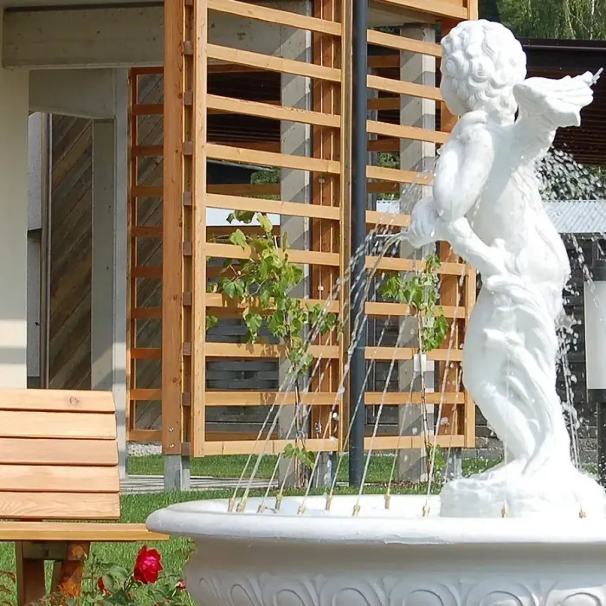 - Fuente de jardín exterior refinada con detalles escultóricos