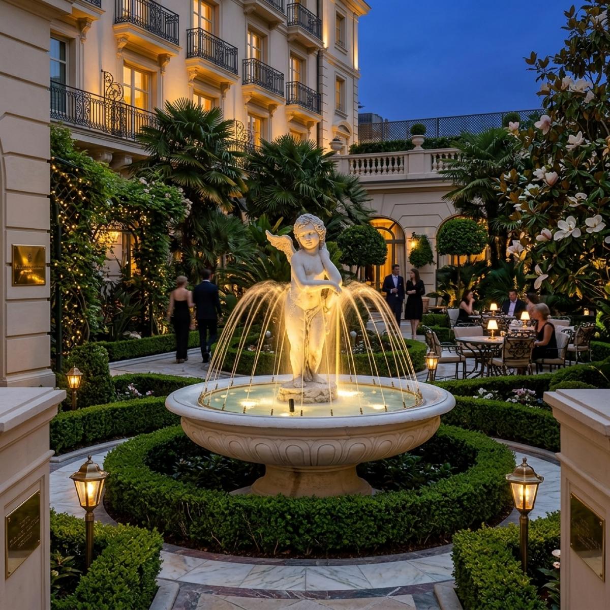 Para realzar aún más la experiencia al aire libre, esta fuente combina perfectamente con mobiliario exterior de lujo, creando un ambiente sereno y acogedor para la relajación. La interacción entre el agua en movimiento y los elegantes asientos mejora la atmósfera, transformando cualquier jardín en un refugio tranquilo que refleja el sofisticado estilo de vida europeo al aire libre.