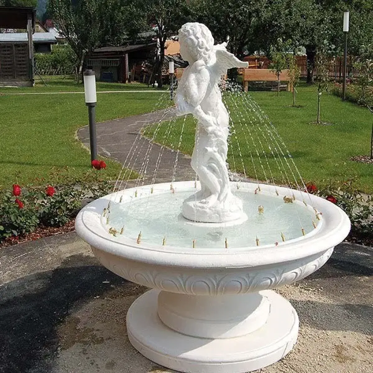- Fuente barroca artística con escultura central de ángel