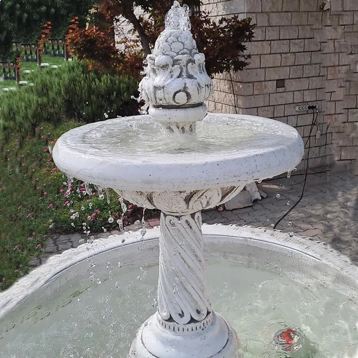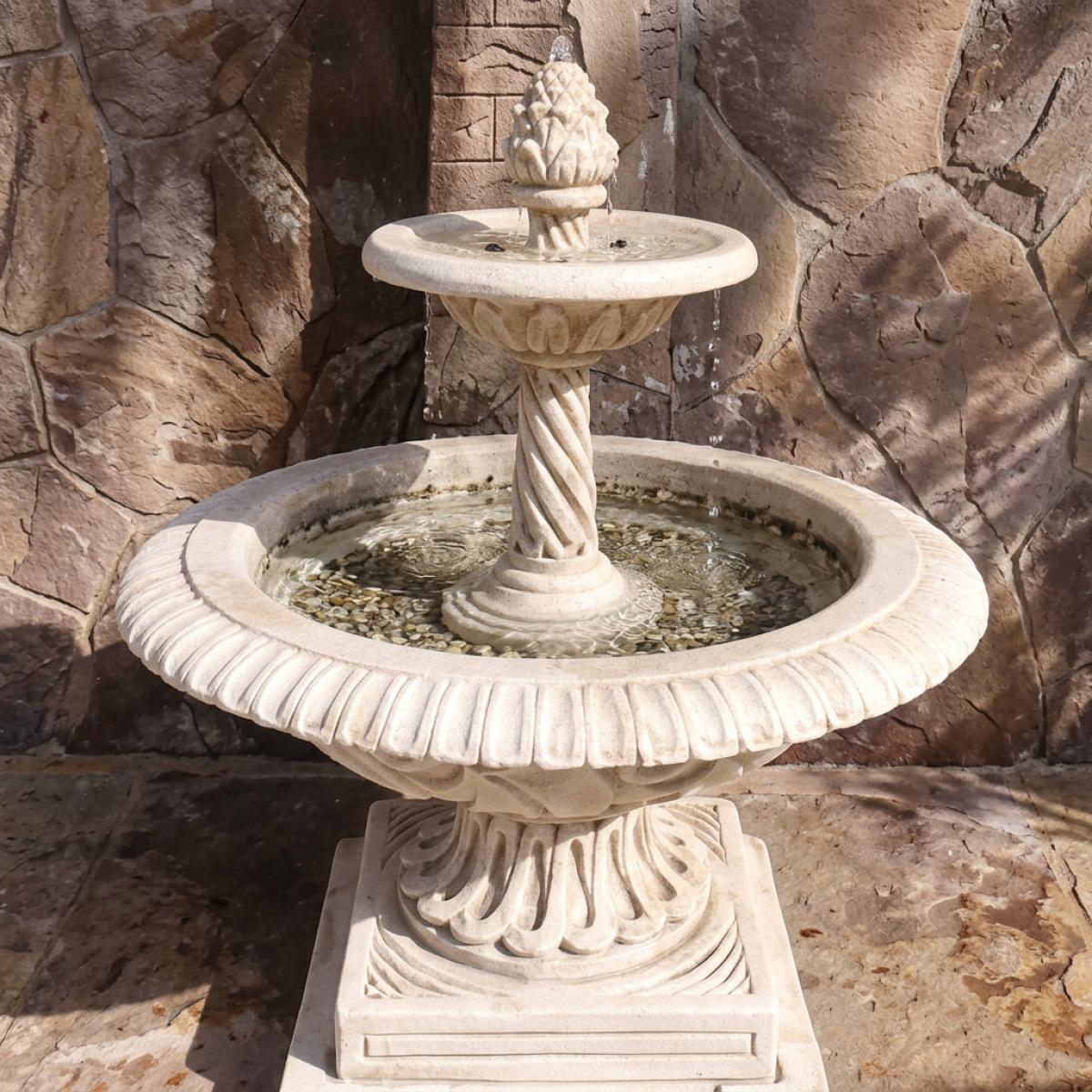 - Fuente clásica para exteriores con detalles esculpidos
