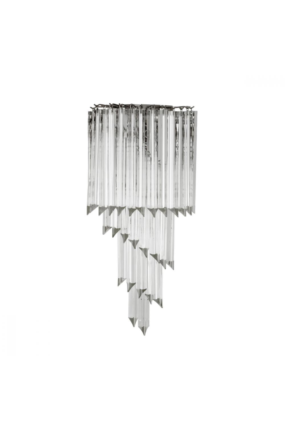 Adéntrese en un mundo de elegancia atemporal con esta lujosa lámpara de pared, donde la sofisticación europea se une al glamour de Hollywood. Fabricada con precisión, la lámpara presenta un diseño de aplique de cristal transparente con flecos que evoca la opulencia de la estética del cine negro de los años 40. Cada varilla cónica de cristal captura y refracta la luz, creando un resplandor ambiental que transforma cualquier habitación en un refugio de lujo.