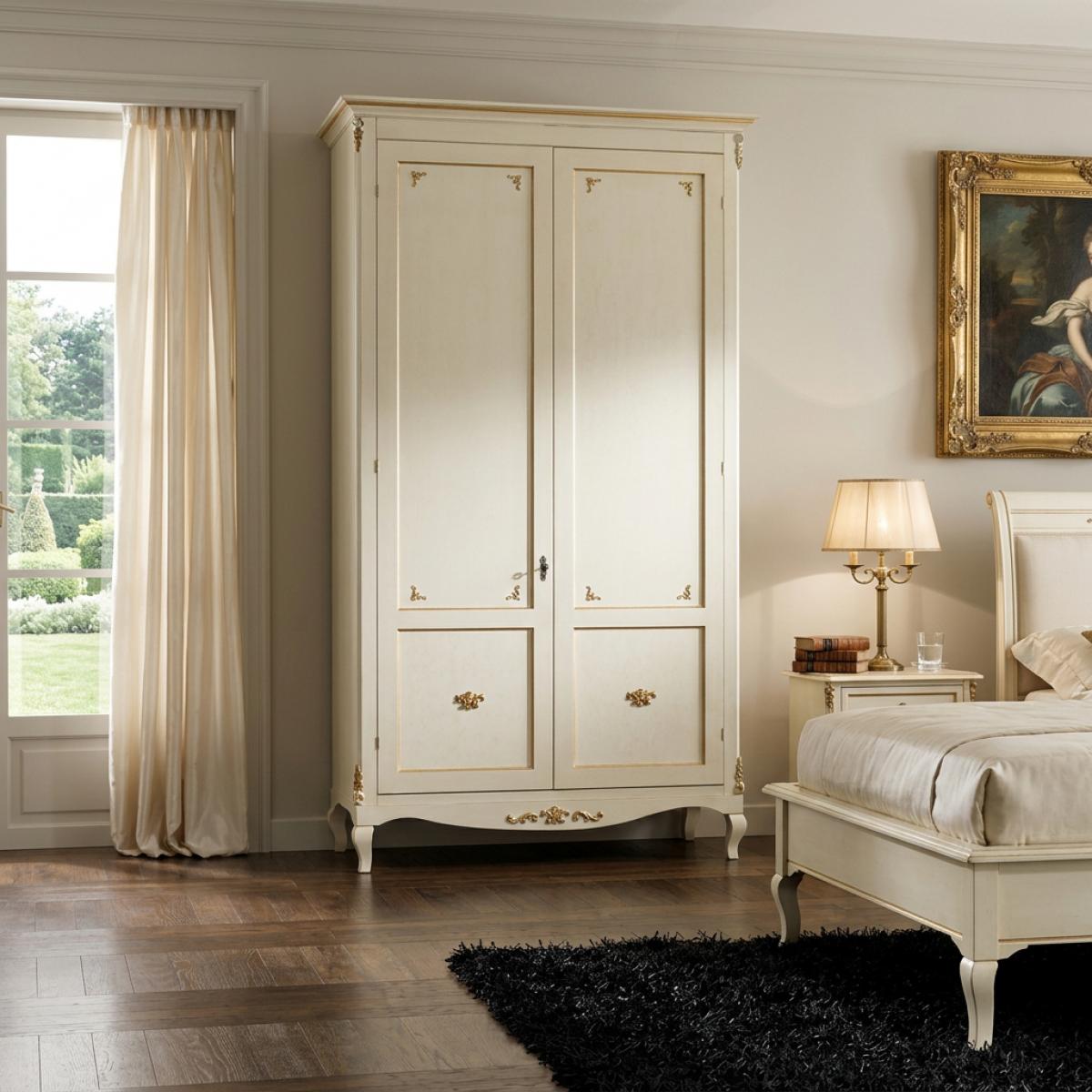 Armario Estantería de Lujo Barroco Blanco de Doble Puerta con Detalles Dorados - Muebles Barrocos por Luxury Group International