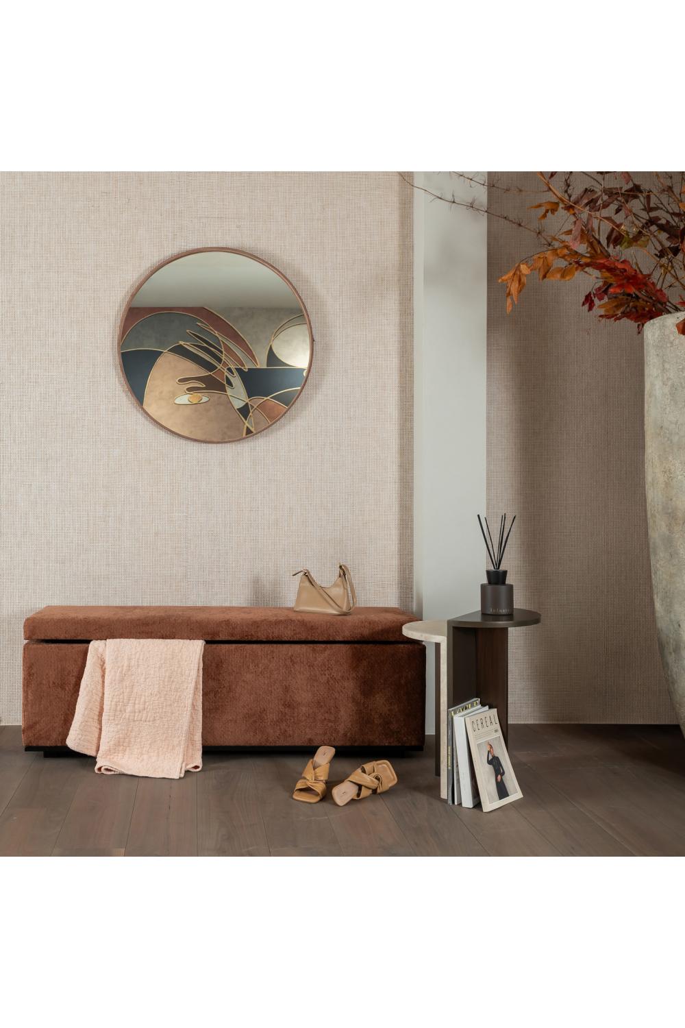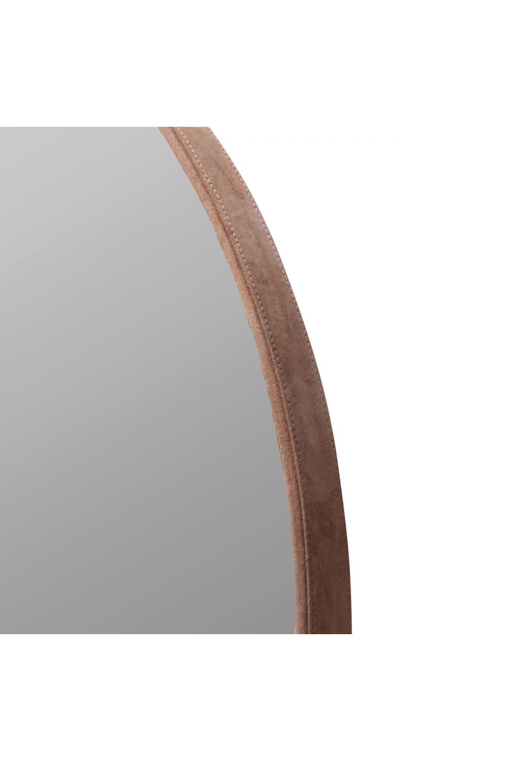 Exquisite round mirror wrapped in premium rose suede leather
