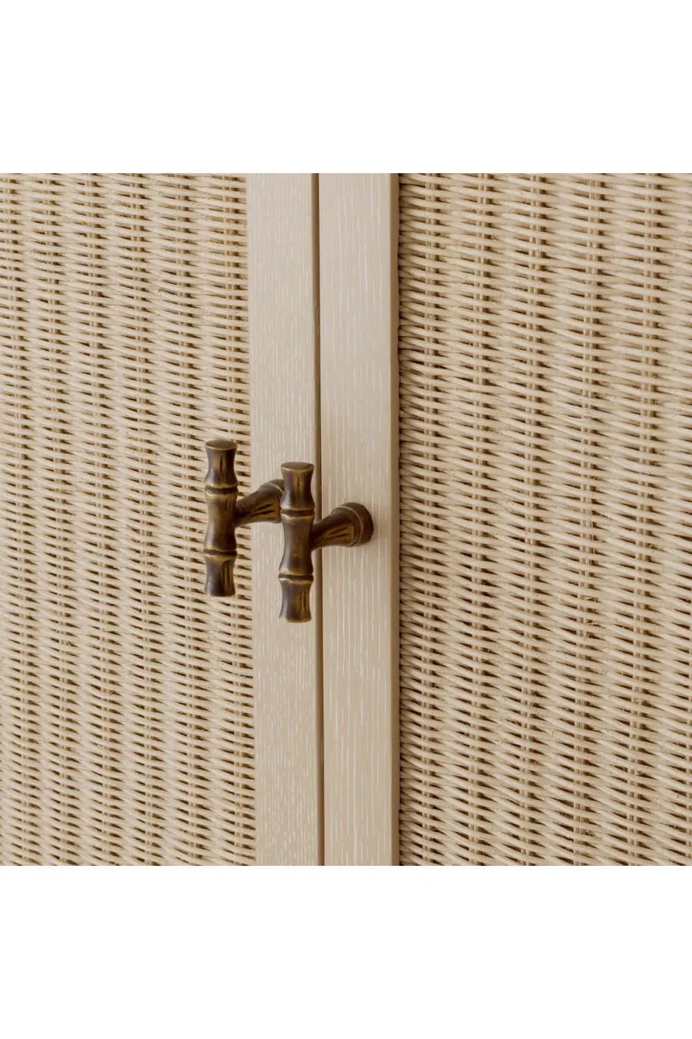 The Exclusive Woven Harmony Cabinet exudes refined sophistication through a seamless blend of washed oak veneer, woven natural rattan, and bronze accents. A timeless fusion of organic warmth and modern luxury, designed to elevate elegant living spaces.