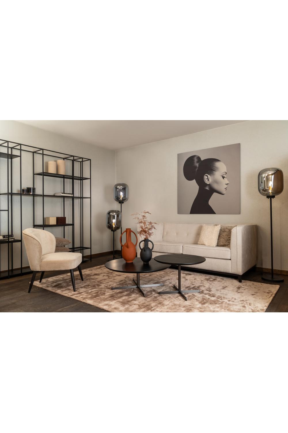The Florentine Arc Lamp captures the essence of European artistry — where form meets function in perfect harmony. Designed for discerning interiors, this floor lamp combines a silver-plated smoked glass shade (Ø35 × H44 cm) with a matte black steel base for a striking yet understated aesthetic.