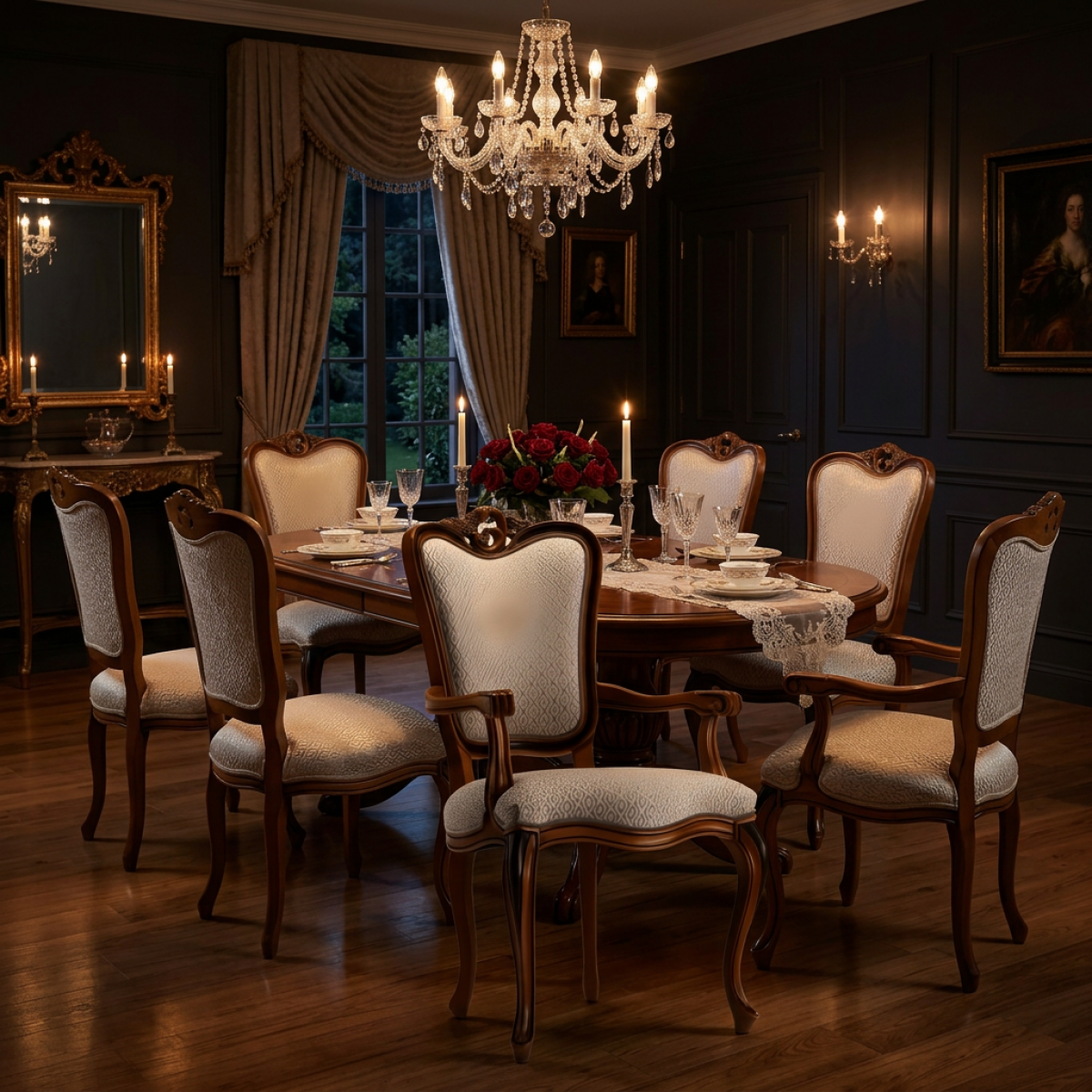 Ces fauteuils complètent sans effort les tables de salle à manger de luxe, créant un cadre de repas raffiné et harmonieux. Qu’ils soient associés à des tables en marbre, en bois artisanal ou design, les détails sculptés renforcent l’ambiance générale. Alliant confort, savoir-faire et style européen classique intemporel, ces fauteuils élèvent les espaces de repas en intérieurs sophistiqués et remarquables.