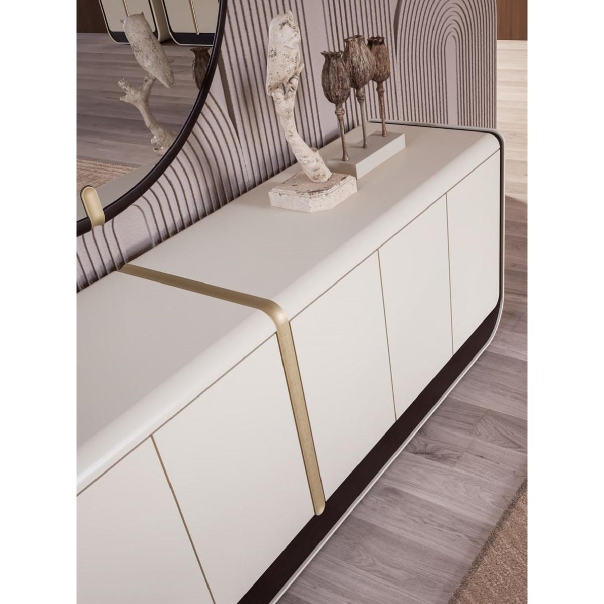 Le Buffet Élégant de Luxe en Bois Massif Crème et Beige avec 6 Portes - Meubles de Luxe offre un parfait équilibre entre style et utilité. Confectionné en bois massif de haute qualité, ce buffet présente une finition lisse crème et beige qui s'harmonise avec divers décors intérieurs. Son design moderne et épuré est rehaussé par le contraste subtil des panneaux crème avec des accents beiges, créant une pièce maîtresse sophistiquée pour toute pièce. La construction en bois massif garantit durabilité et usage prolongé, faisant de ce meuble un ajout précieux à votre collection de mobilier. Ce modèle est conçu avec des lignes nettes et des bords arrondis, ajoutant une touche d'élégance et de sécurité.