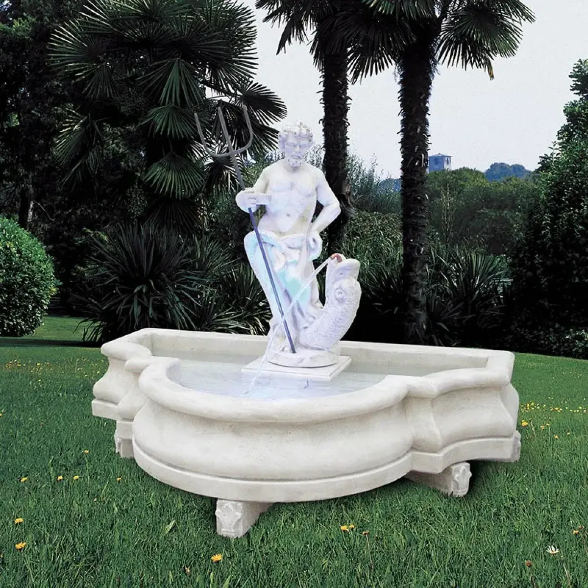 Fontaine d'eau de jardin Neptune baroque de luxe avec bassin sculpté et finition marbre est une fontaine baroque exceptionnelle qui incarne la grandeur du design classique des jardins européens. Dotée d'une figure finement sculptée de Neptune tenant un trident, associée à un motif aquatique dynamique, cette fontaine d'eau transforme les espaces extérieurs en lieux artistiques sereins. Conçue en granulat de marbre de Carrare de première qualité et ciment blanc renforcé, la structure allie durabilité et savoir-faire raffiné, offrant une pièce maîtresse visuellement impressionnante qui valorise jardins, cours et villas paysagées.