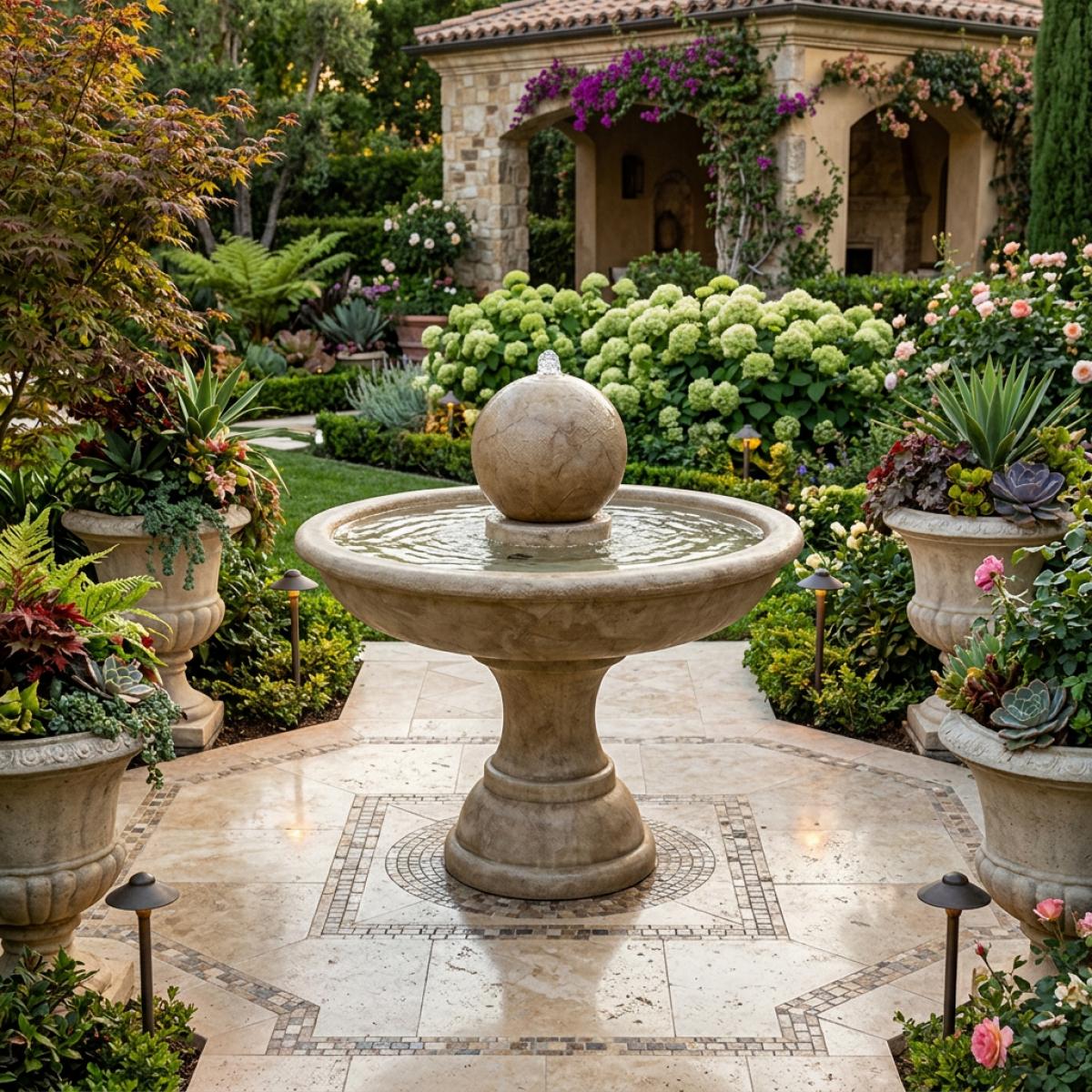 - Fontaine baroque élégante avec sphère sculptée centrale