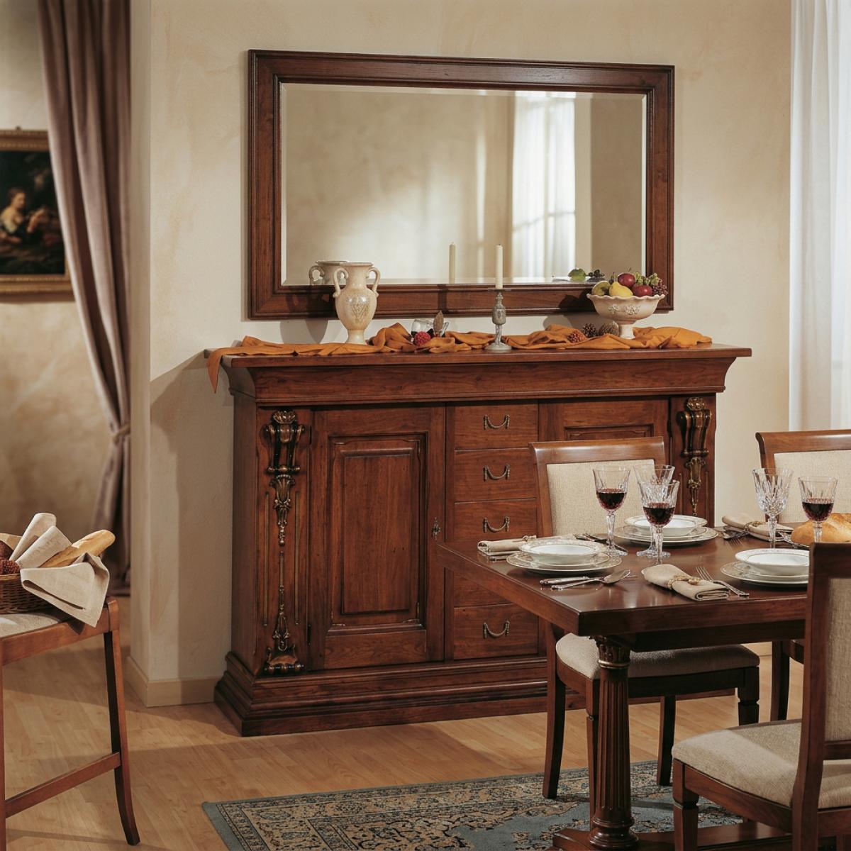 Complétez votre composition intérieure avec nos miroirs baroques de luxe, conçus pour accompagner le mobilier traditionnel et rehausser l’élégance de votre espace. Un miroir joliment positionné au-dessus du buffet ajoute de la profondeur visuelle, reflète la lumière naturelle et crée un point focal raffiné qui élève l’ensemble de l’environnement de vie.
