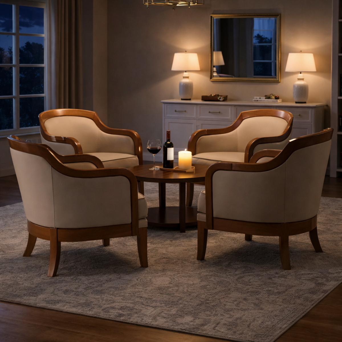 Le Fauteuil de Salle à Manger Barrel de Luxe avec Revêtement Crème et Structure en Bois met en valeur un savoir-faire européen raffiné et une élégance intemporelle. Ce fauteuil de salle à manger luxueusement rembourré présente une silhouette incurvée en forme de tonneau qui enveloppe délicatement l’assise, offrant à la fois douceur visuelle et confort ergonomique. Le revêtement crème moelleux renforce l’attrait luxueux, tandis que la structure en bois sculptée ajoute chaleur et raffinement structurel. Conçu comme un fauteuil de salle à manger design, ce fauteuil équilibre sophistication contemporaine et artisanat classique, le rendant idéal pour des intérieurs de salle à manger élégants et des espaces d’hôtellerie boutique.