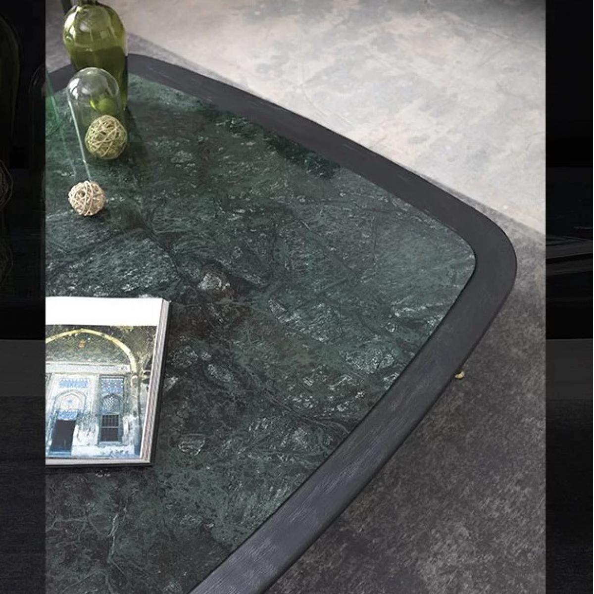 La Table Basse de Luxe Noire et Verte avec Accents en Laiton Antique et Plateau en Marbre est une table basse de luxe conçue pour sublimer tout espace de salon grâce à sa finition noire sophistiquée et sa silhouette carrée. Conçue avec un souci du détail, cette table dispose d’un plateau en marbre lisse qui ajoute une touche d’élégance et de durabilité, la rendant idéale pour un usage quotidien. Ses dimensions de 120 x 120 cm offrent une surface généreuse pour des objets décoratifs, des livres ou des rafraîchissements, tout en conservant une présence équilibrée dans la pièce.