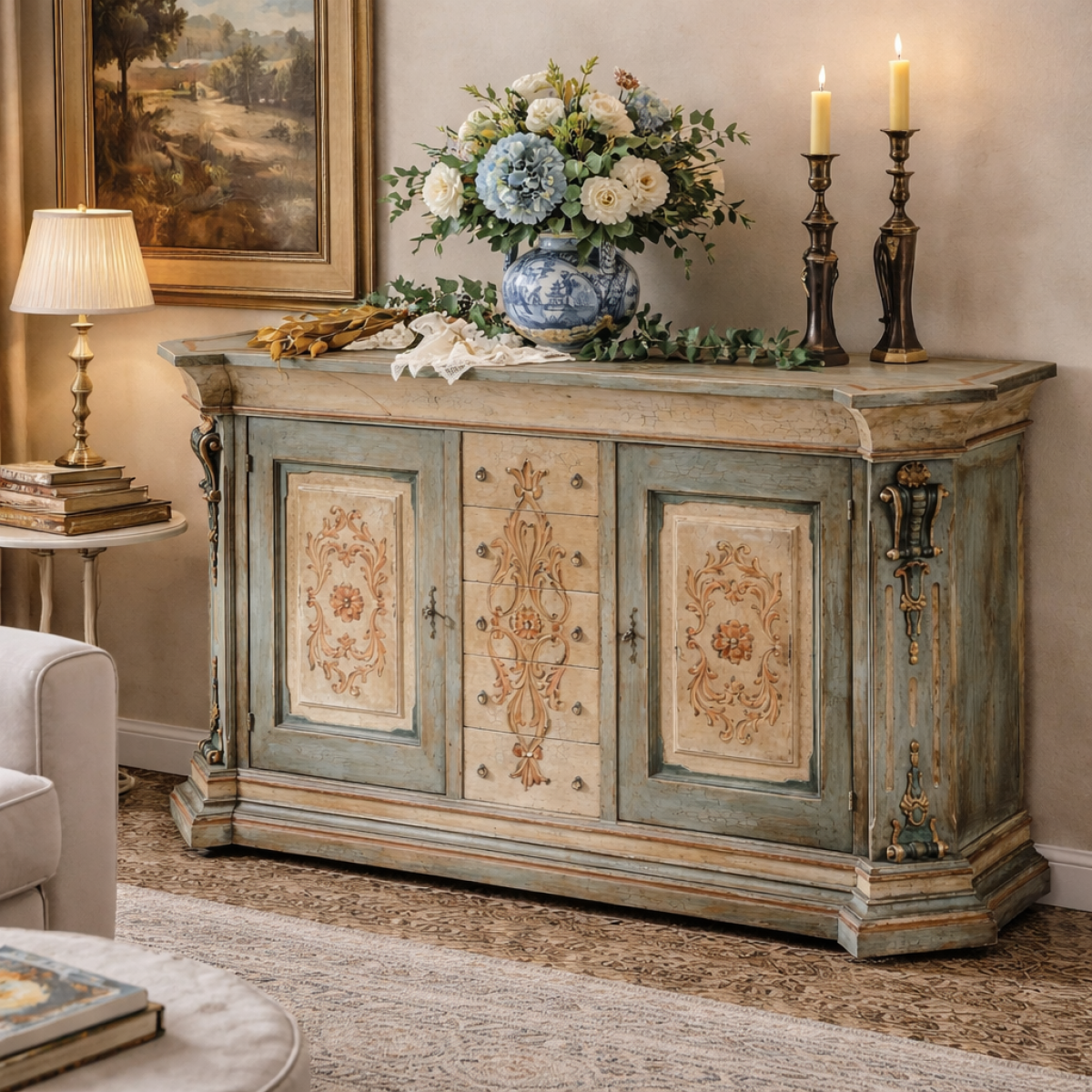 Buffet de luxe élégant avec finition vieillie peinte à la main