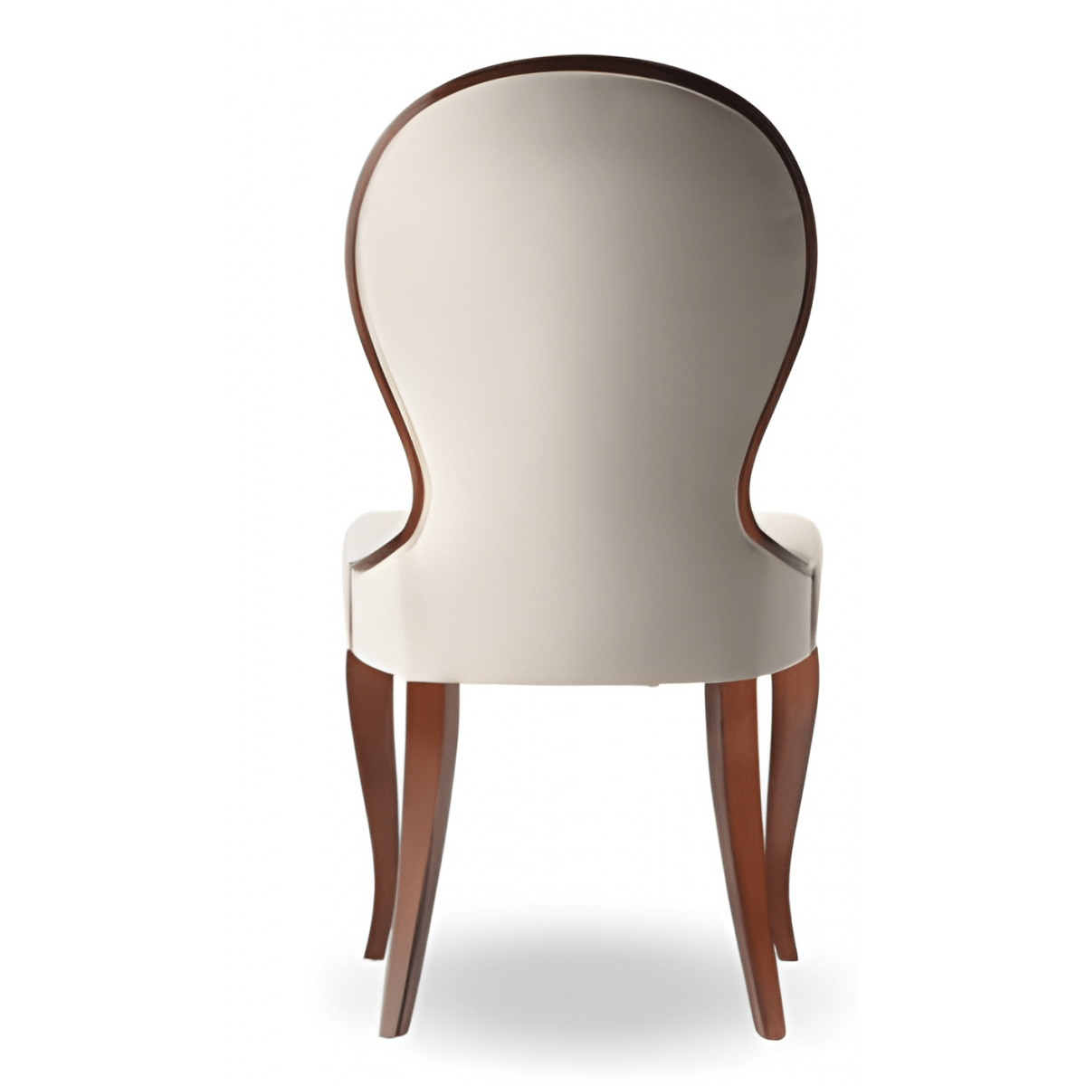 Chaise de Salle à Manger de Luxe avec Dossier Courbé et Revêtement en Tissu Crème, Pieds en Noyer est conçue pour apporter une élégance raffinée et une sophistication européenne intemporelle aux intérieurs de luxe. Ces chaises de salle à manger rembourrées de luxe présentent une silhouette de dossier courbé sculpté avec des détails de revêtement lisse et un profil d'assise ajusté pour un confort supérieur. Les pieds en bois de noyer ajoutent chaleur et durabilité, tandis que le revêtement crème accentue la douceur visuelle. Conçues avec des proportions élégantes, ces chaises en bois pour salle à manger offrent à la fois confort et raffinement esthétique, idéales pour les environnements de salle à manger de luxe et les espaces d'hôtellerie boutique.