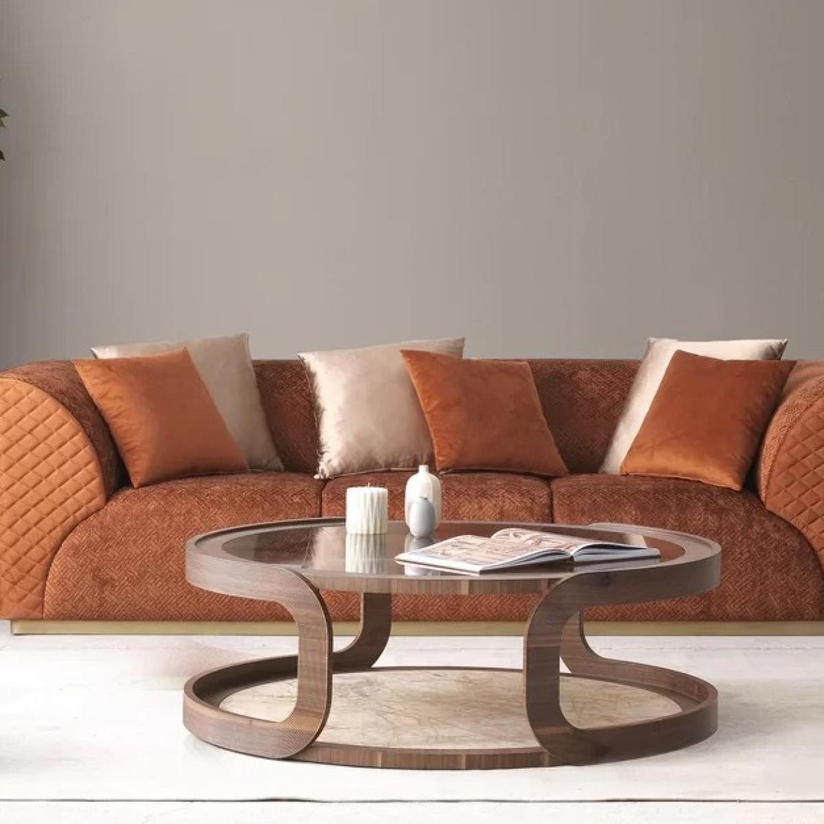 En tant que table de salon avec plateau en verre et plaque en marbre, ce produit offre à la fois charme esthétique et usage fonctionnel. La surface en verre est facile à nettoyer et à entretenir, tandis que la base en marbre assure durabilité et contraste visuel saisissant. Ce meuble de luxe est parfait pour ceux qui recherchent une pièce maîtresse affirmée alliant textures naturelles et design contemporain. Il s'intègre parfaitement dans tout cadre haut de gamme, faisant de lui un ajout intemporel à votre intérieur ou environnement hôtelier. Parcourez notre collection de tables basses de luxe pour découvrir des tables maîtresses raffinées conçues pour sublimer les intérieurs modernes et classiques. Le Canapé 3 places capitonné orange et beige de luxe complète magnifiquement cette table basse de luxe, créant une ambiance chaleureuse et sophistiquée dans le salon.