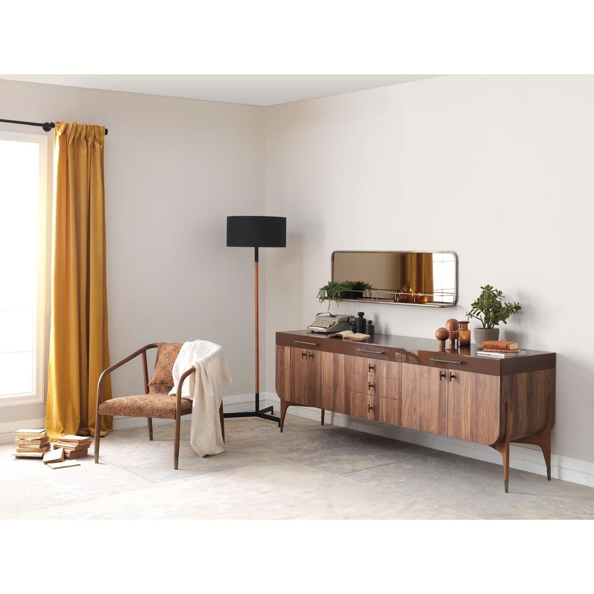 Ce buffet combine fonctionnalité et style, avec des coulisses de tiroirs fluides et des charnières robustes pour un accès facile et une utilisation durable. Les tiroirs spacieux sont idéaux pour organiser couverts, linges ou autres articles ménagers, tandis que les quatre portes s’ouvrent sur des compartiments de rangement supplémentaires. La construction en bois massif garantit non seulement la solidité mais met aussi en valeur le grain naturel et la texture du bois, ajoutant du caractère à votre décoration. Son design élégant complète aussi bien les intérieurs modernes que classiques.