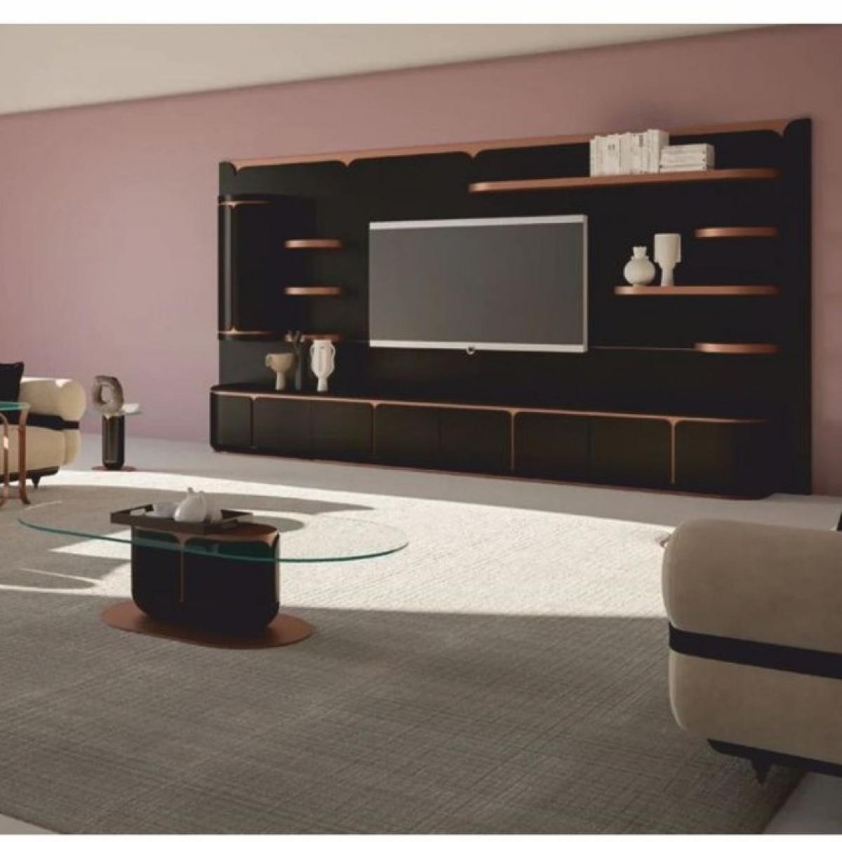 Conçu pour les salons et les espaces hôteliers, ce meuble de luxe offre une présentation haut de gamme sans encombrement. La finition mate maintient une surface moderne et discrète, tandis que les accents en cuivre ajoutent une touche de luxe qui s’harmonise aisément avec un mobilier neutre et une décoration contemporaine. Qu’il soit utilisé pour centrer une télévision dans un salon ou pour rehausser le caractère visuel d’un espace de divertissement hôtelier, ce meuble propose une solution design affirmée. Utilisez-le comme console de divertissement emblématique et comptez sur ses rangements inférieurs segmentés pour maintenir un environnement ordonné et accueillant. Pour des installations de divertissement plus raffinées, explorez notre collection d’unités TV de luxe présentant des designs élégants conçus pour des intérieurs sophistiqués. Complétez votre espace de vie avec la Table basse de luxe marron / cuivre, conçue pour apporter chaleur, élégance et sophistication raffinée aux intérieurs modernes.