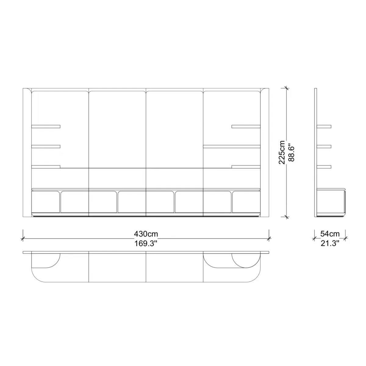 Le compartiment central ouvert est l’élément phare, offrant un espace clair et prêt à exposer qui confère à votre installation média une sensation de légèreté, de contemporanéité et d’intention. Derrière cette disposition équilibrée, le corps inférieur du meuble est divisé en plusieurs espaces de rangement par des lignes verticales, permettant un placement organisé des accessoires média, essentiels de jeu ou objets du quotidien. Des lignes de garniture verticales ton cuivre le long des espaces inférieurs renforcent encore le design structuré, rendant la console raffinée sous tous les angles. Le résultat est une unité TV noire avec détails en cuivre à la fois élégante et fonctionnelle.