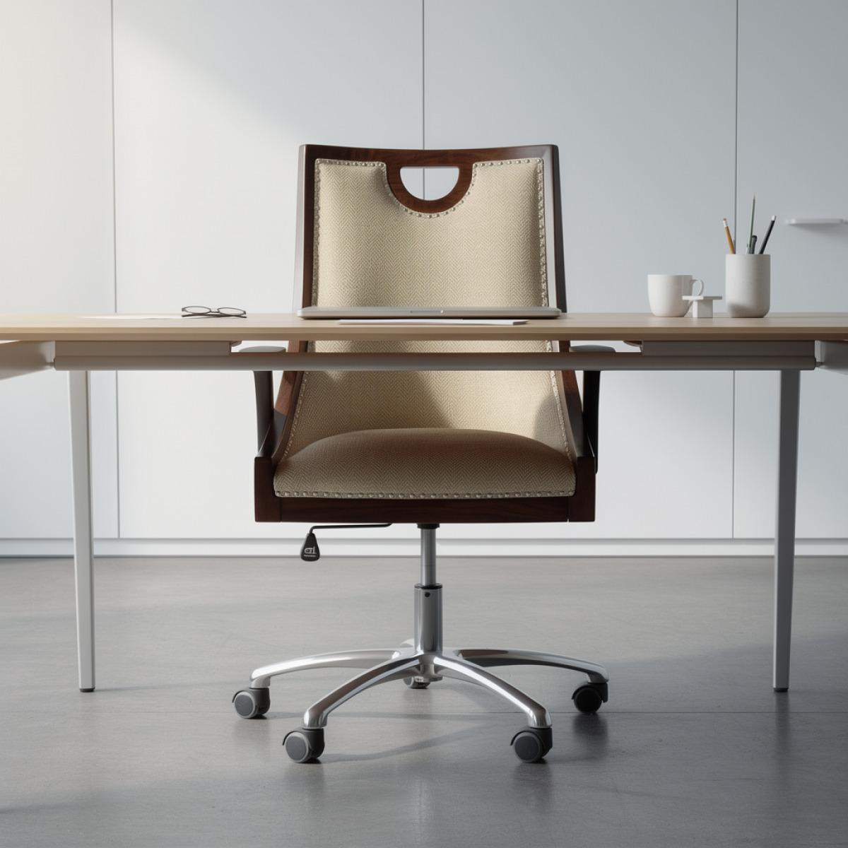 Cette solution d’assise raffinée s’intègre parfaitement dans des environnements professionnels équipés de fauteuils de direction de luxe, créant un espace de travail cohérent et sophistiqué. Le dossier ergonomique offre un excellent soutien pour les longues heures de travail, tandis que la base pivotante réglable avec roulettes silencieuses assure flexibilité et facilité de déplacement. Pour un bureau exécutif coordonné, envisagez d’associer ce fauteuil avec le Fauteuil de direction de luxe capitonné en velours crème avec cadre en bois foncé et base pivotante réglable, créant un agencement équilibré et raffiné.